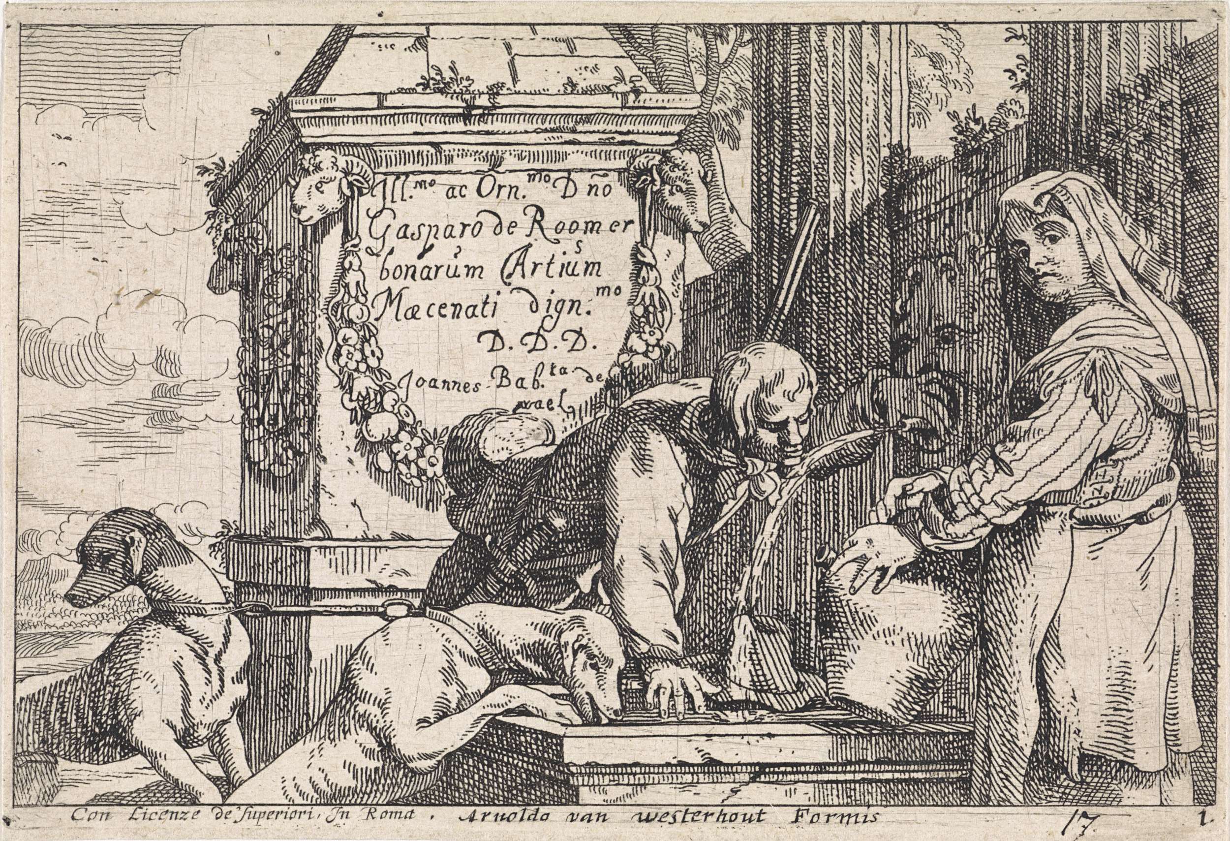 Cartouche met allegorische figuren