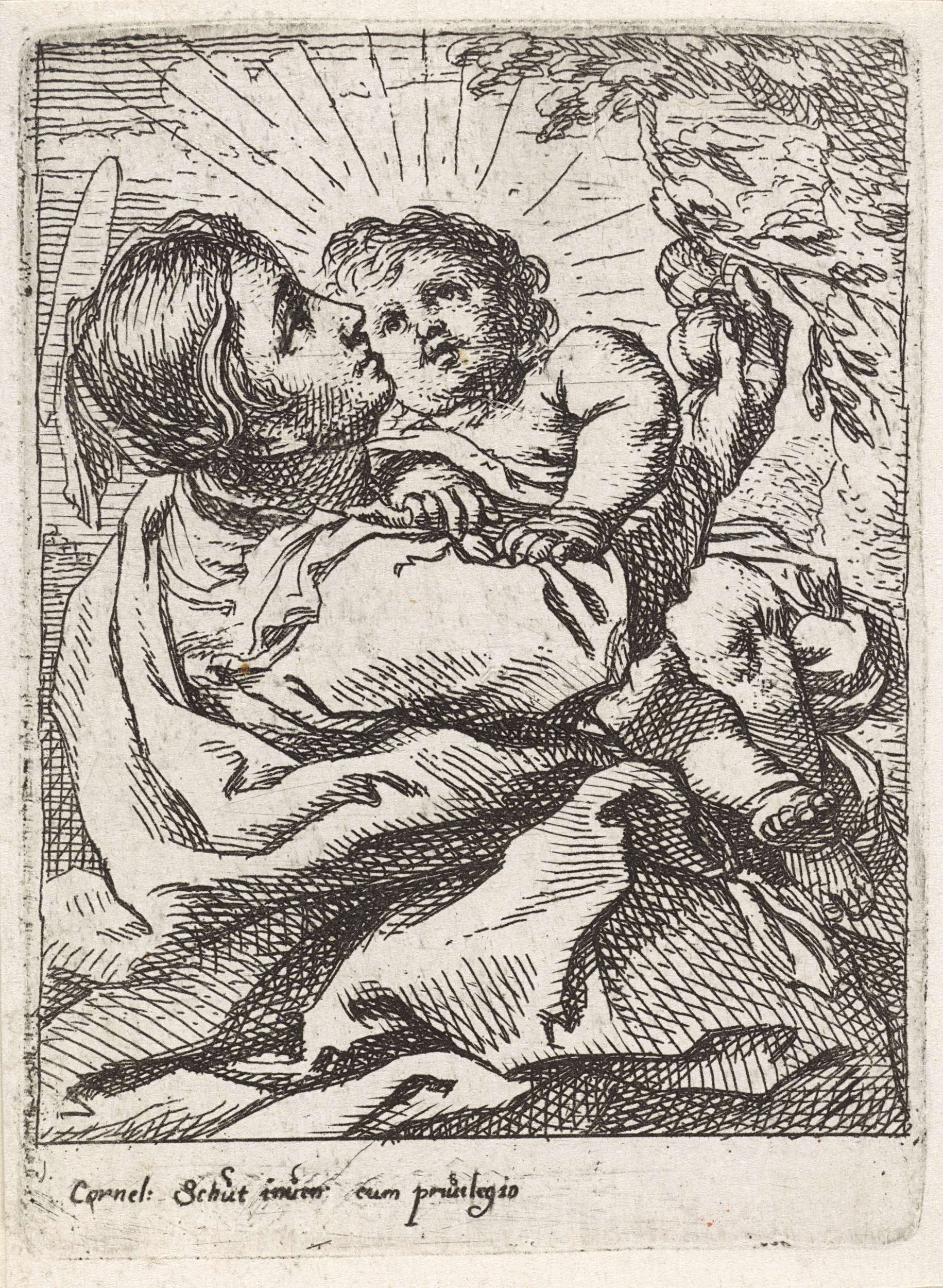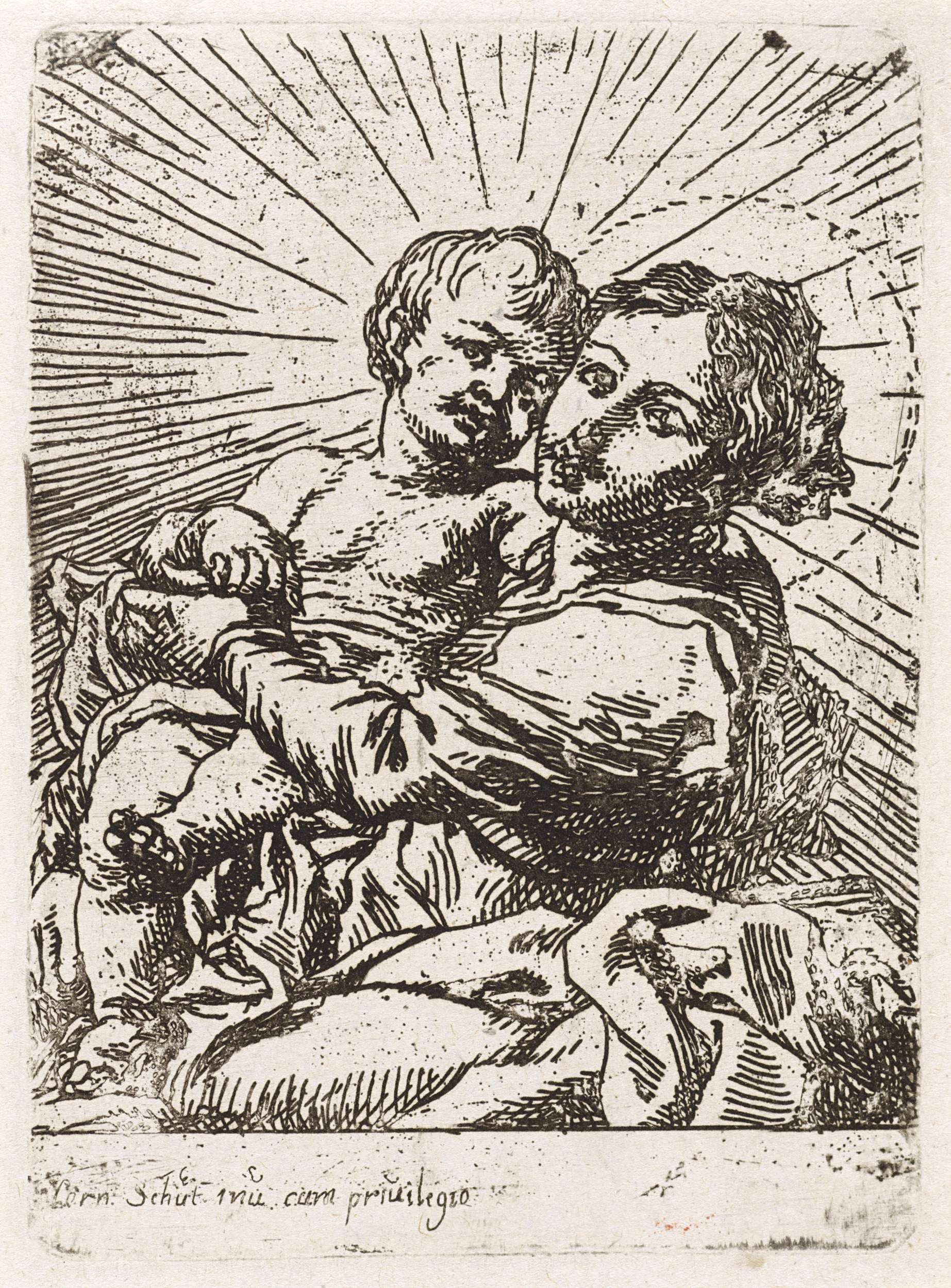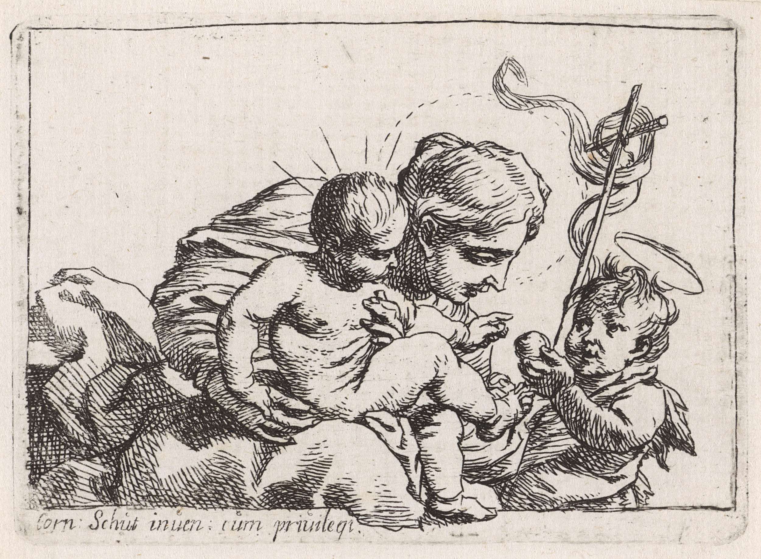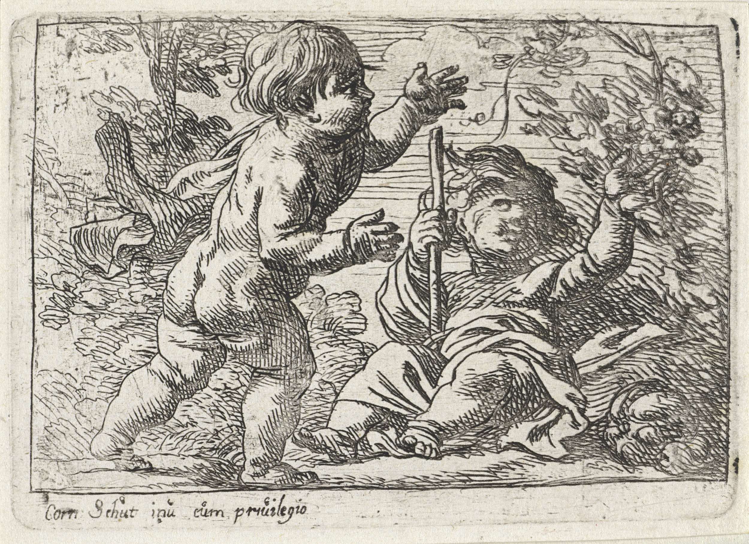 Christuskind en Johannes de Doper in innige omhelzing