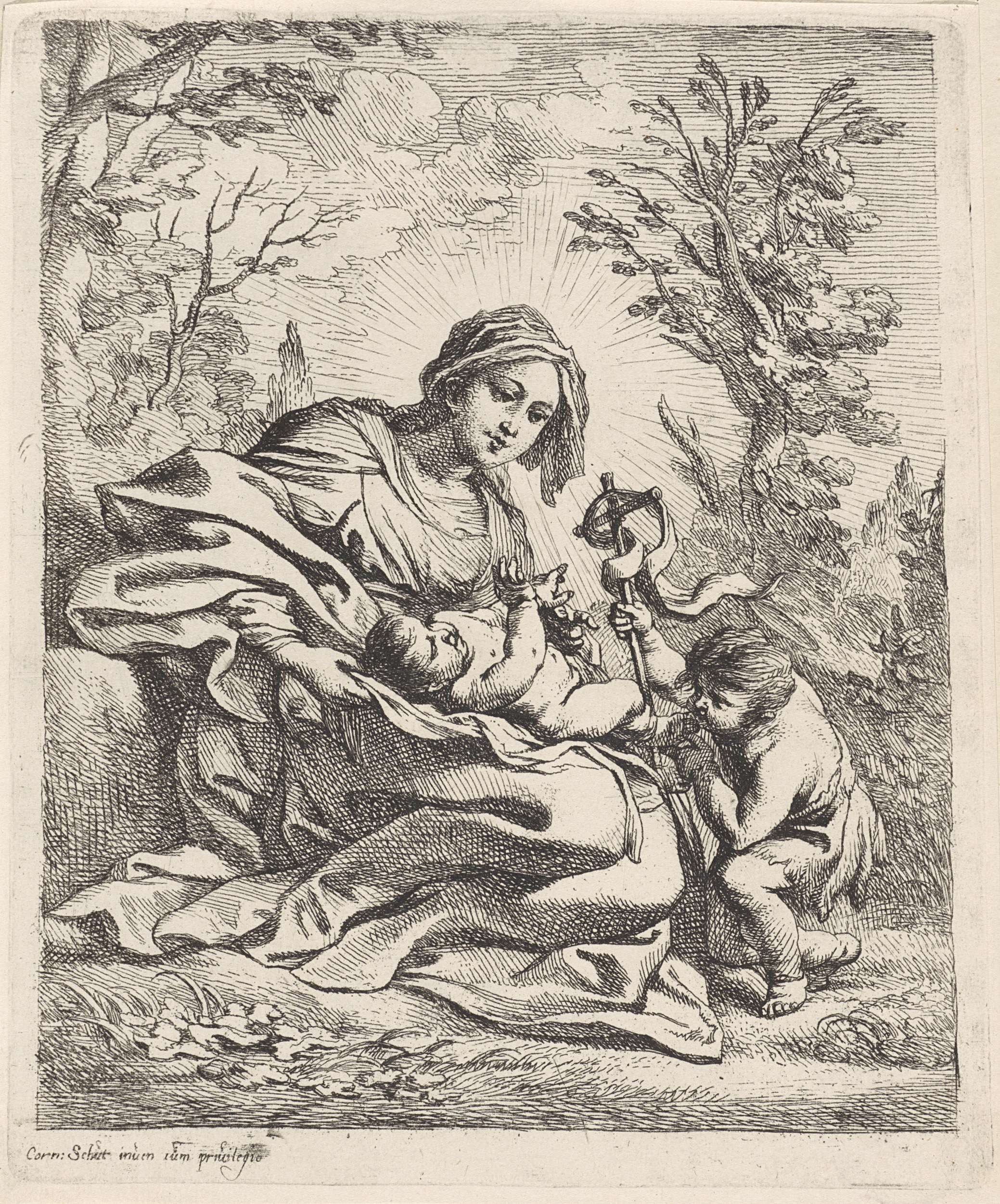 Madonna met kind en Johannes de Doper in een landschap