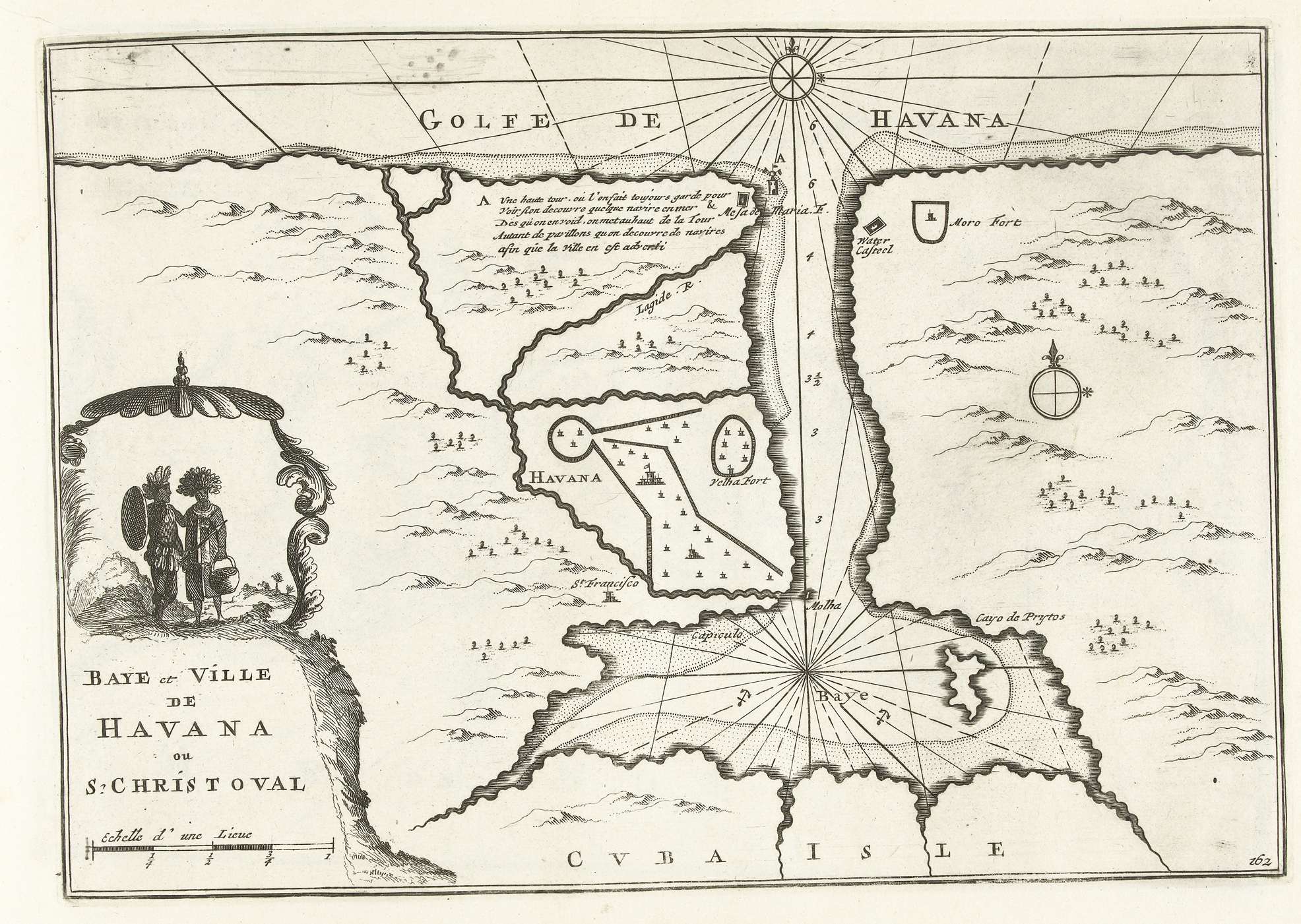 Kaart van Havana en de baai op Cuba, ca. 1702