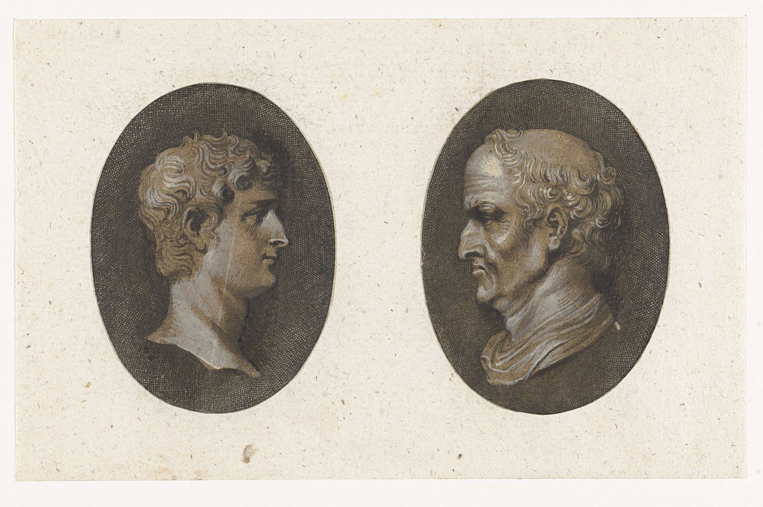 Portretmedaillon van Frans Greenwood vastgehouden do...