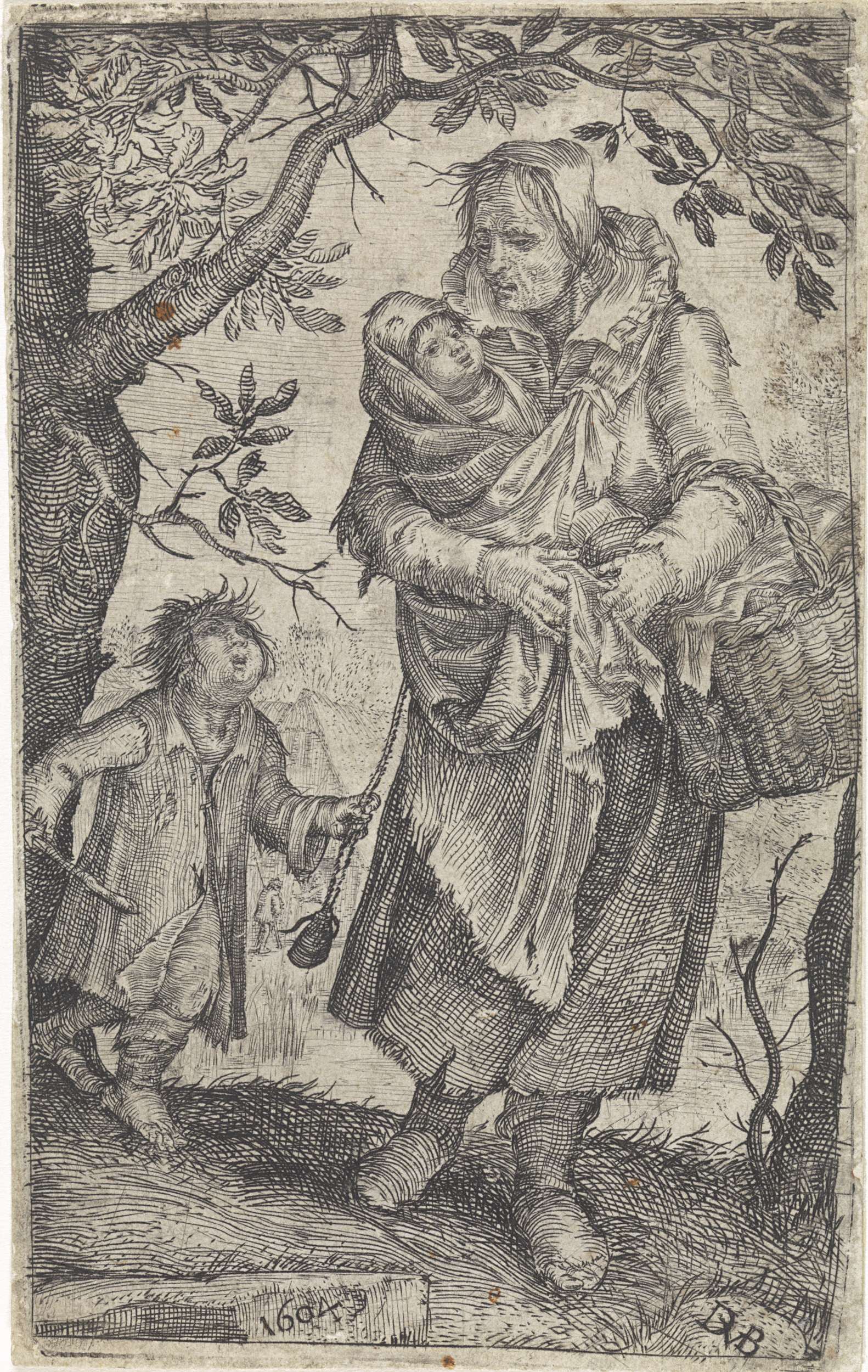 Bedelaarster met twee kinderen