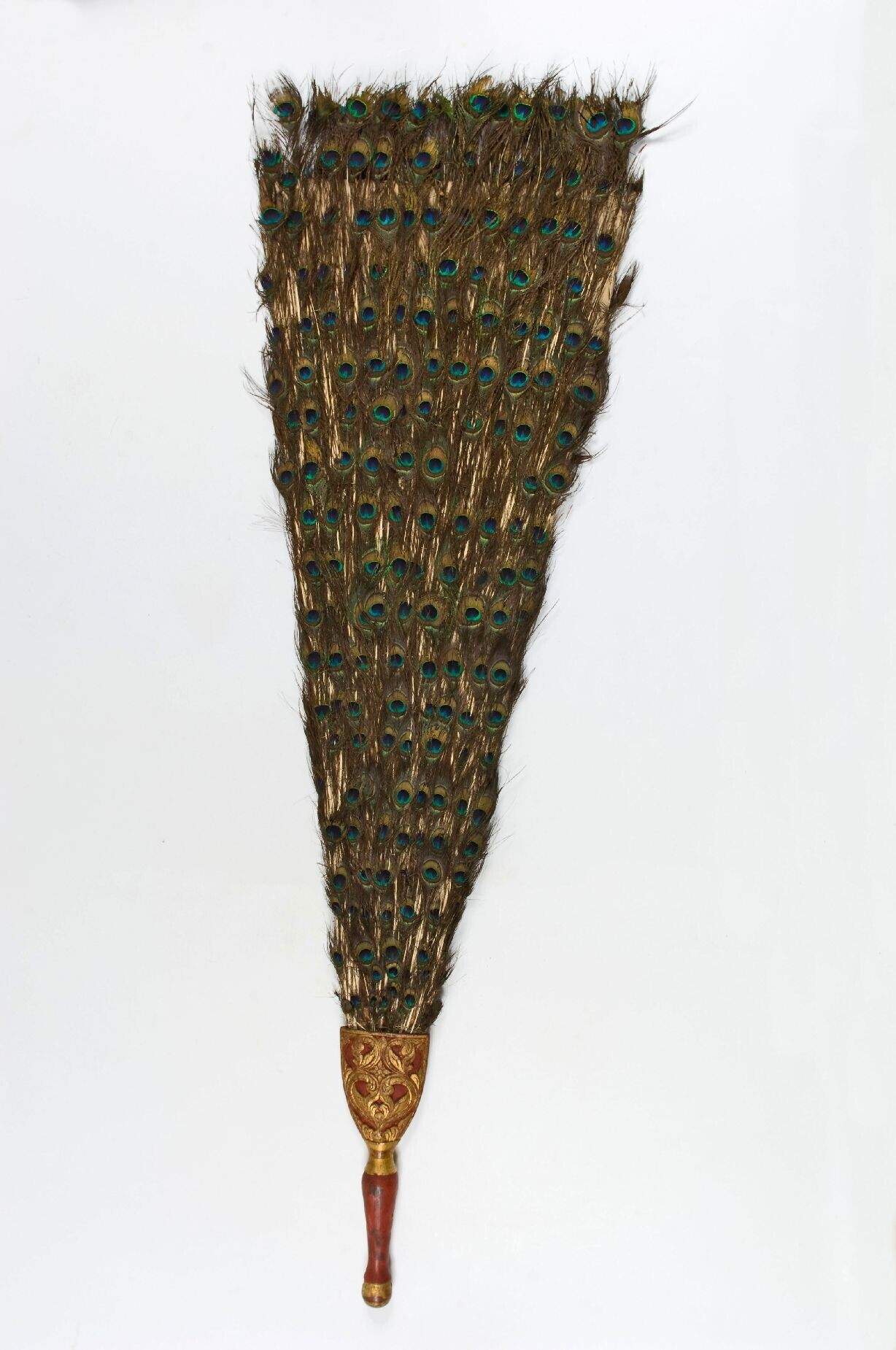 A fan of a peacock's tail