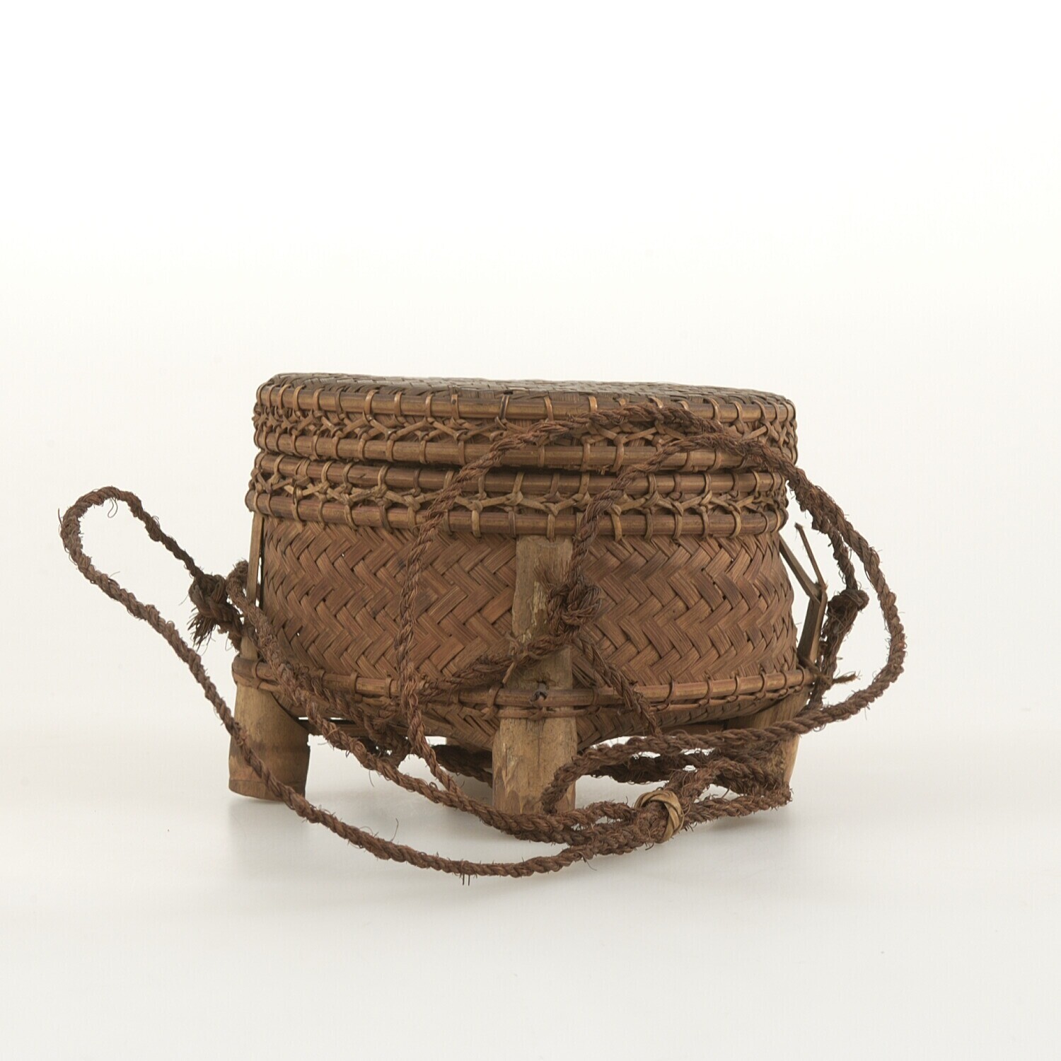 Blaasroer van bamboe met zes houten pijlen in pijlkoker