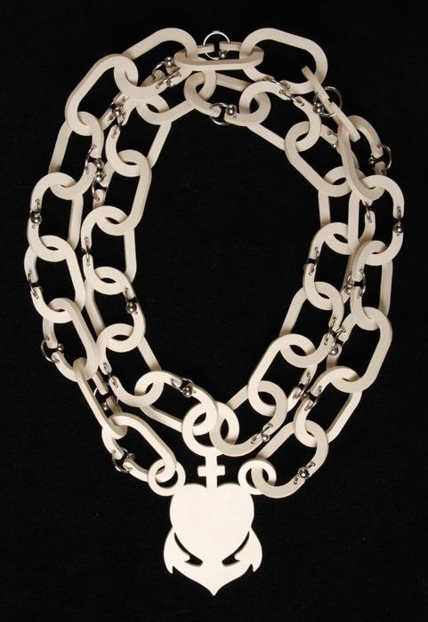 Crèmekleurige ketting van ovale rubberingen en een a...