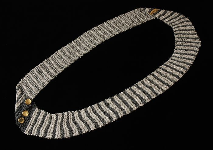 Gebreide sjaal van metaal in zilveren en metaalkleur...