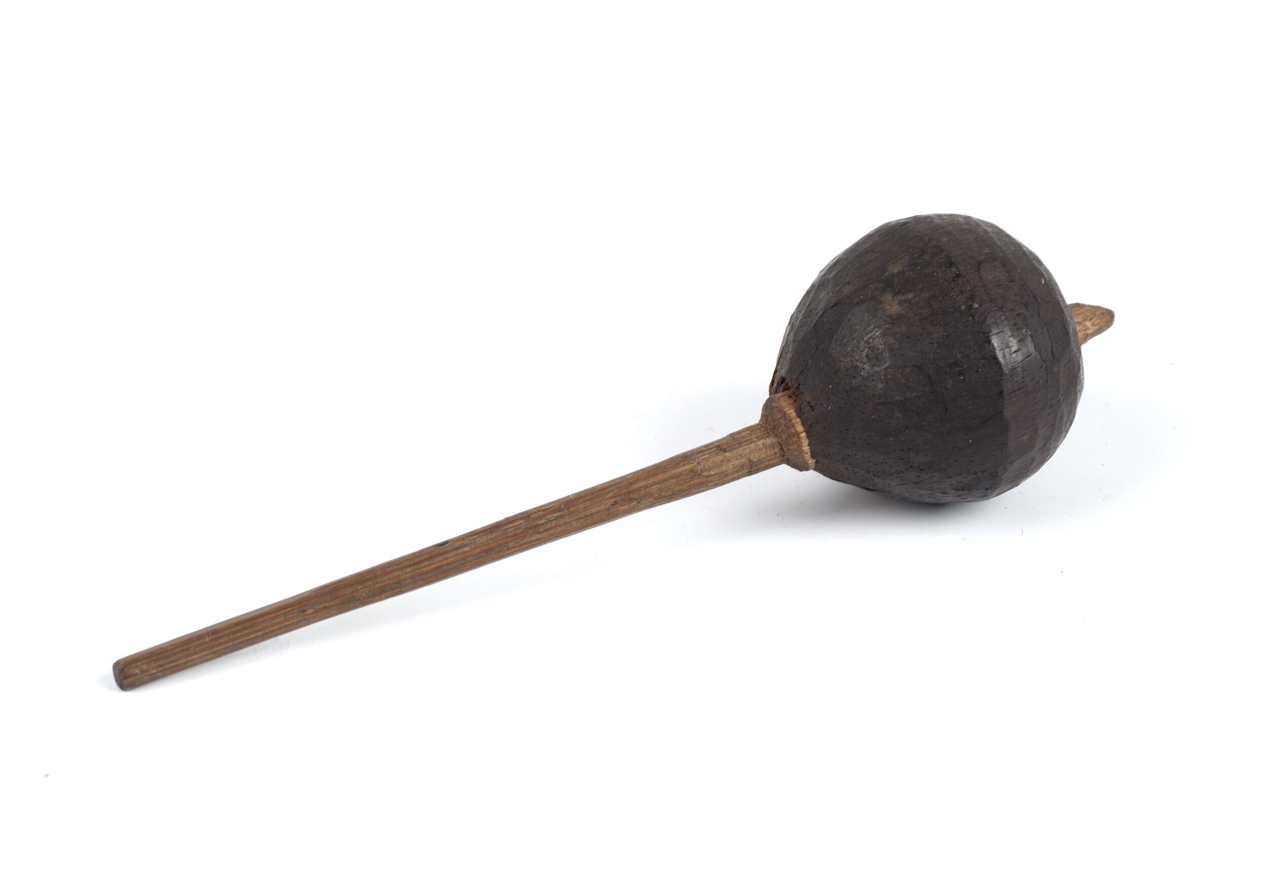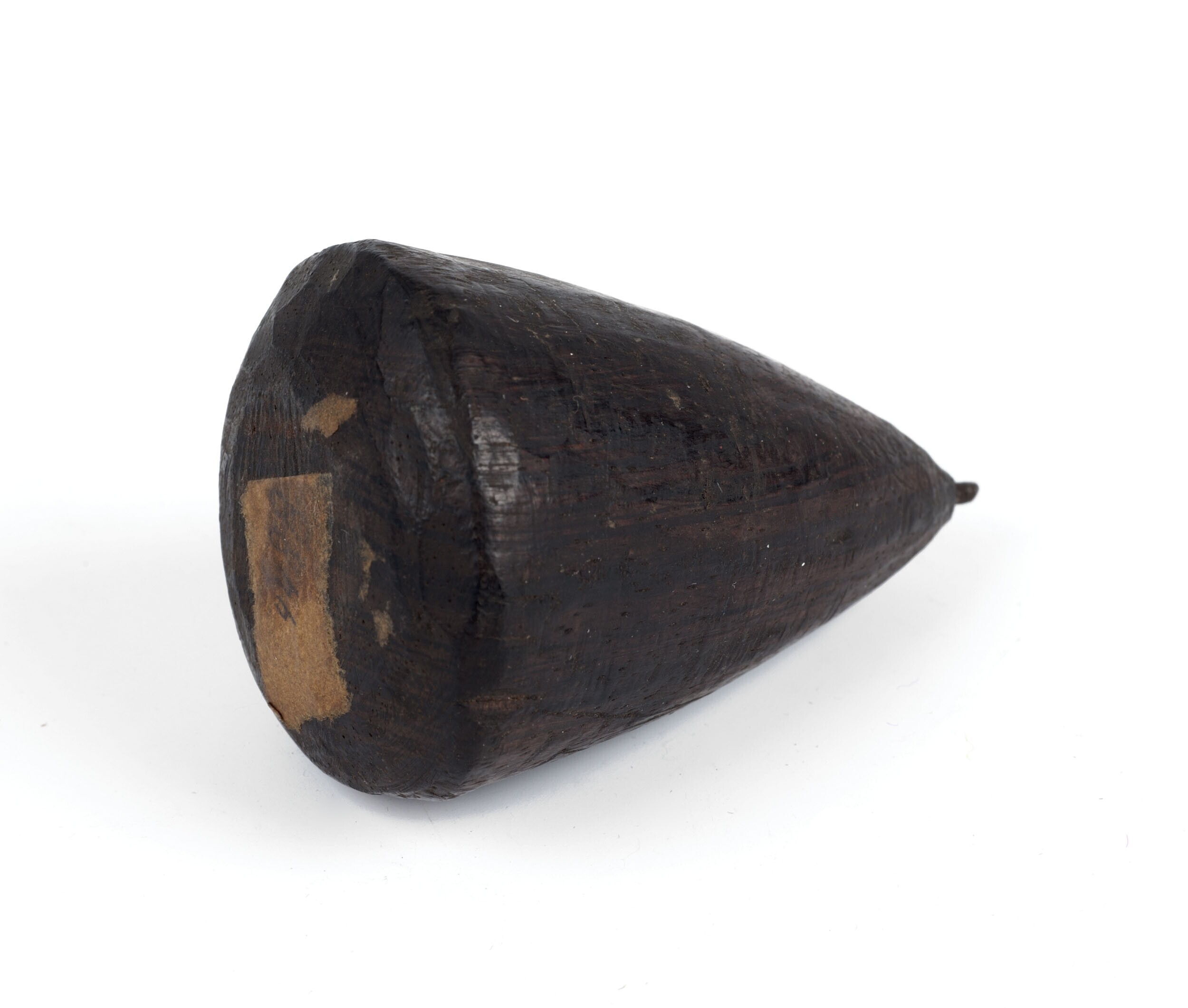 Houten priktol met ijzeren punt