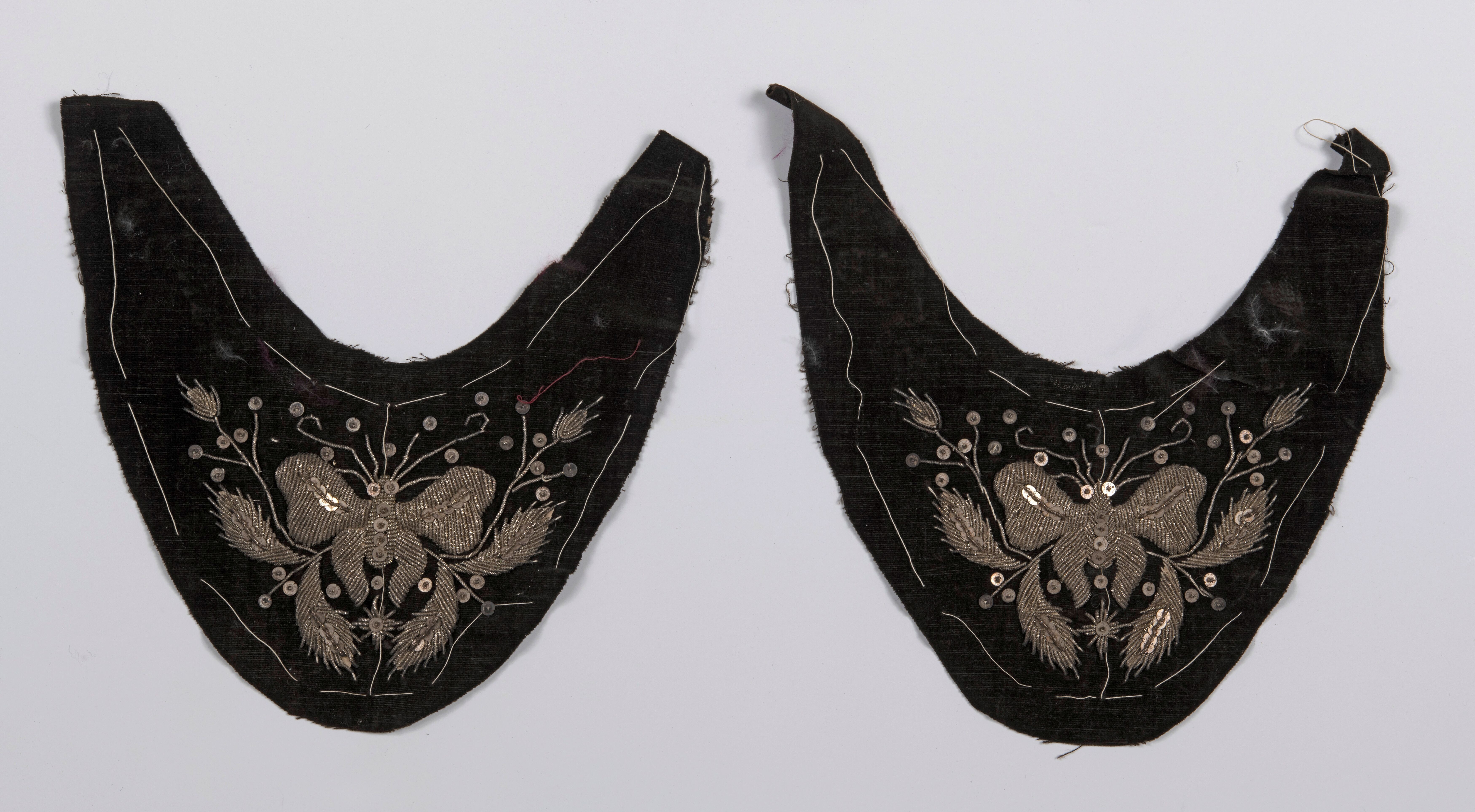 Een paar geborduurde voorstukken van een muiltje