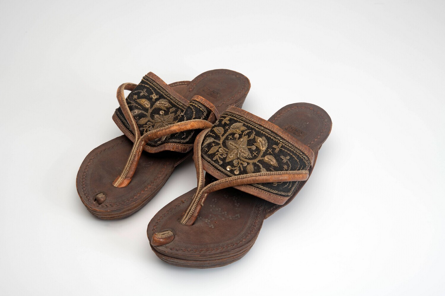 Een paar leren slippers