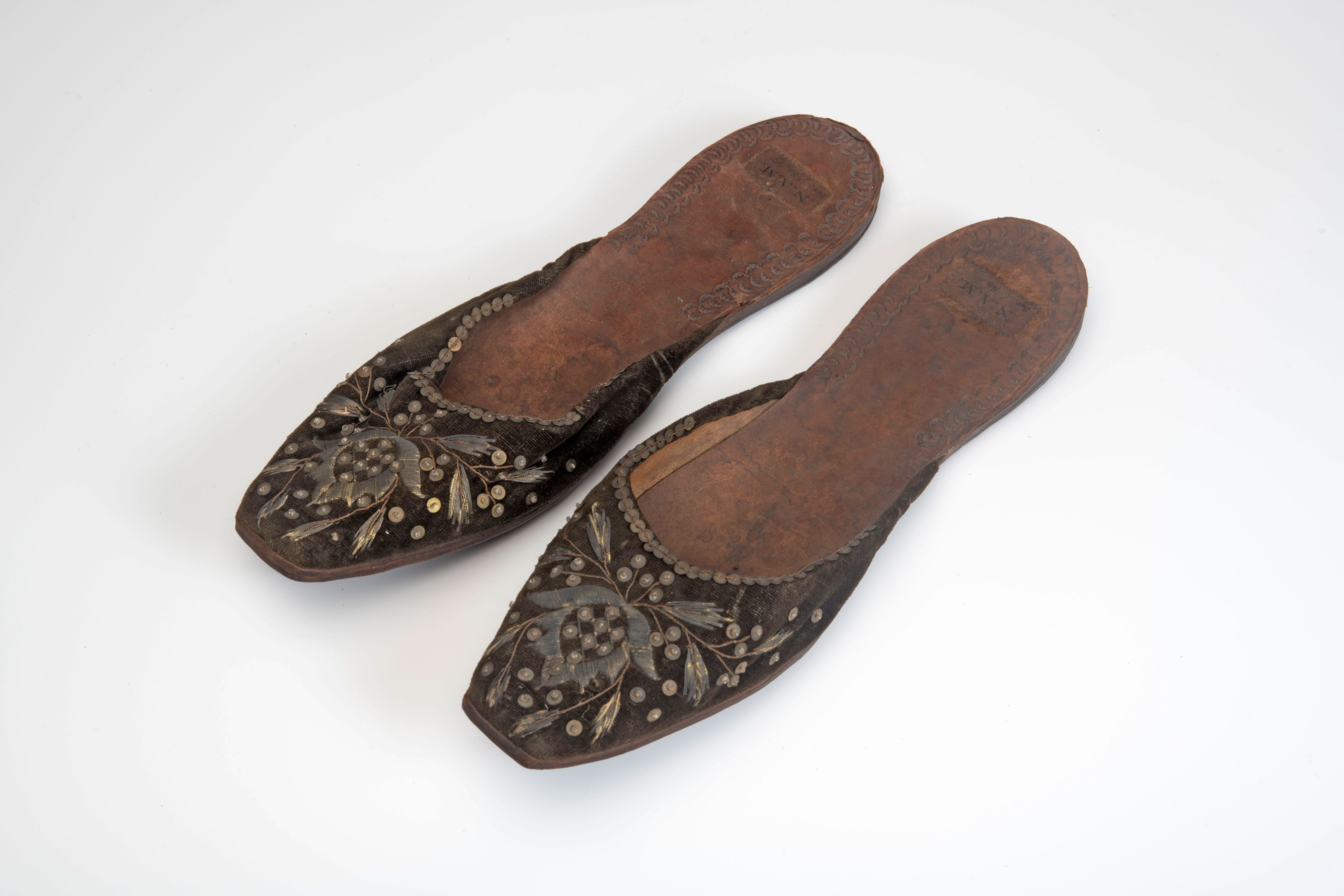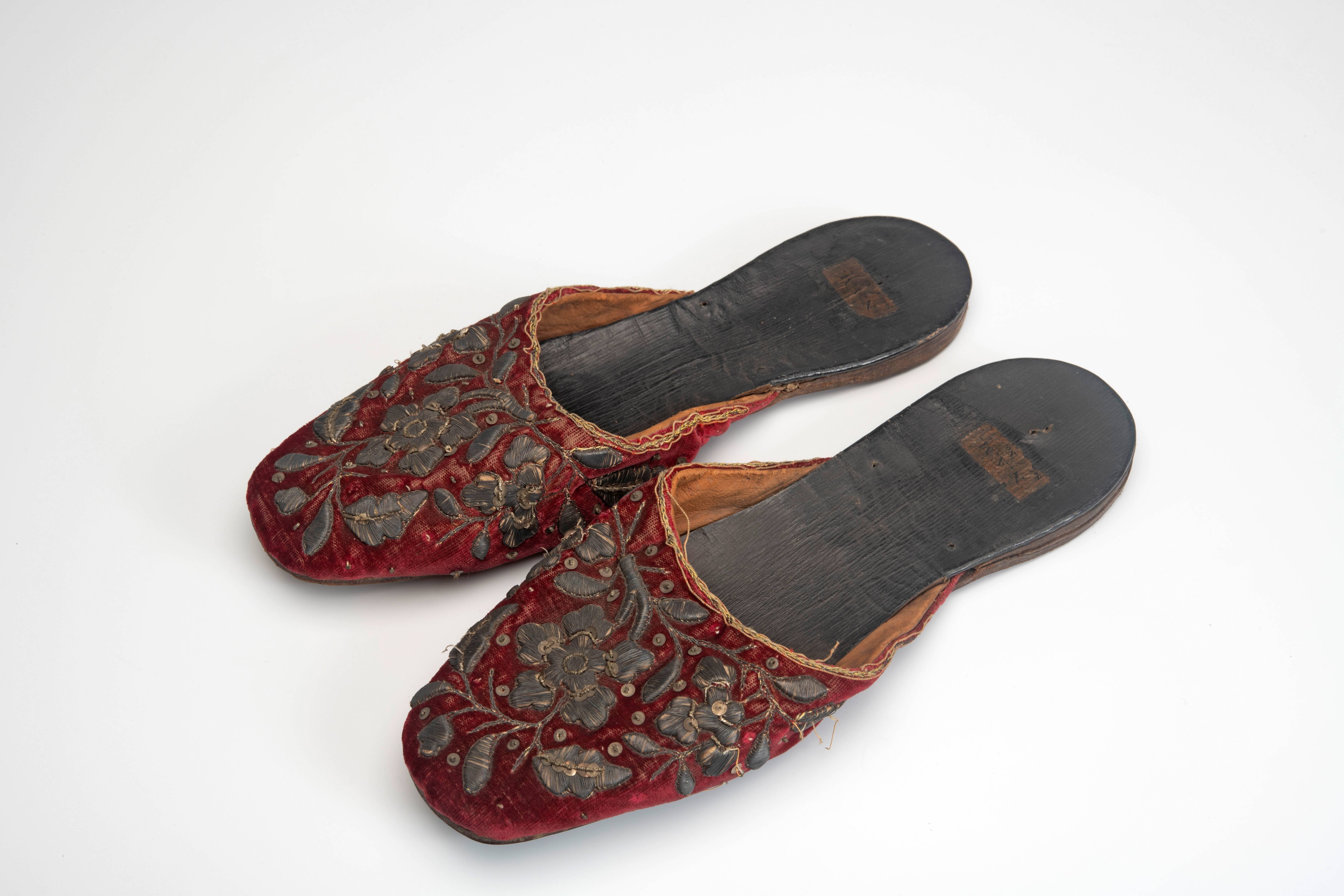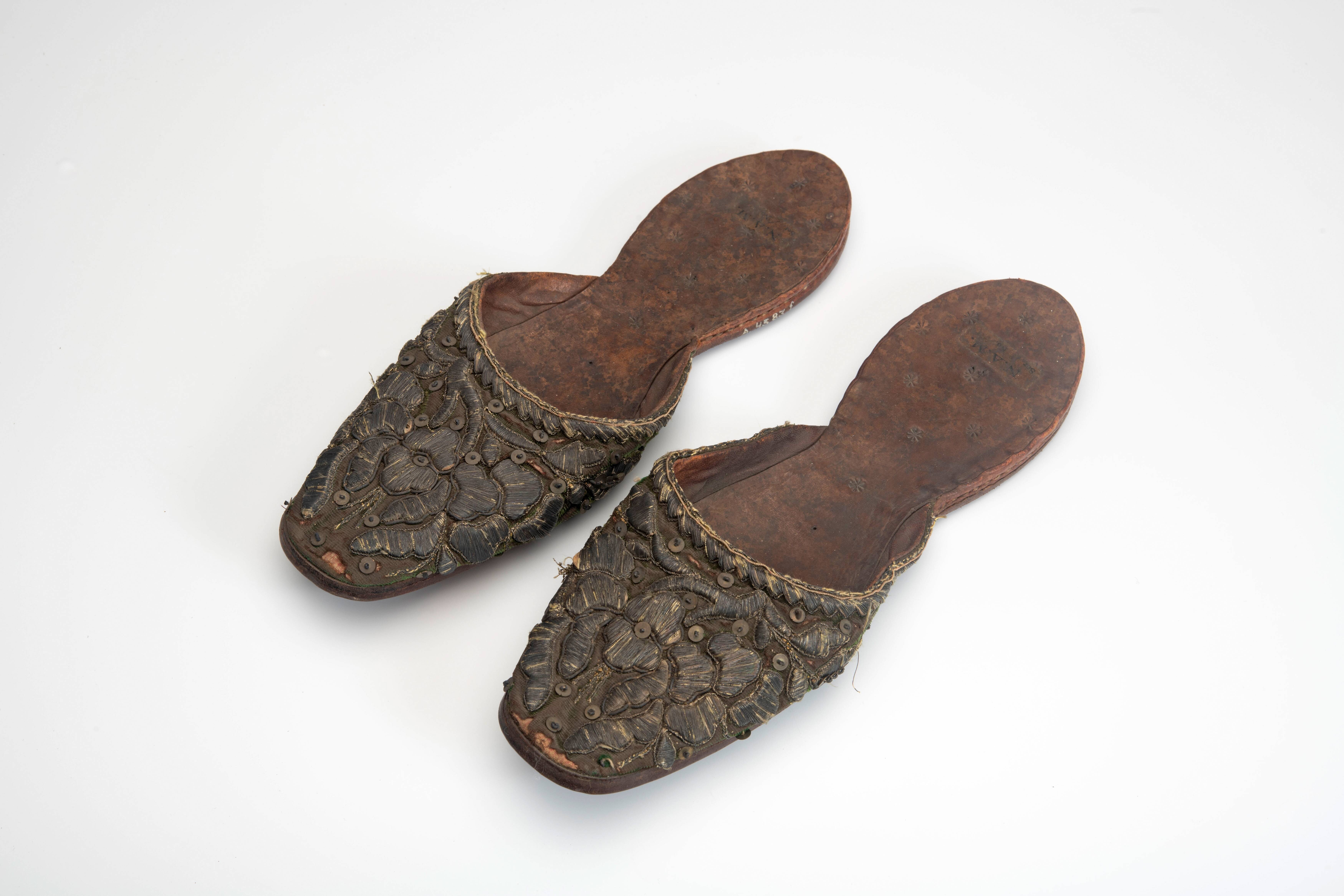 Een paar sloffen met borduurwerk