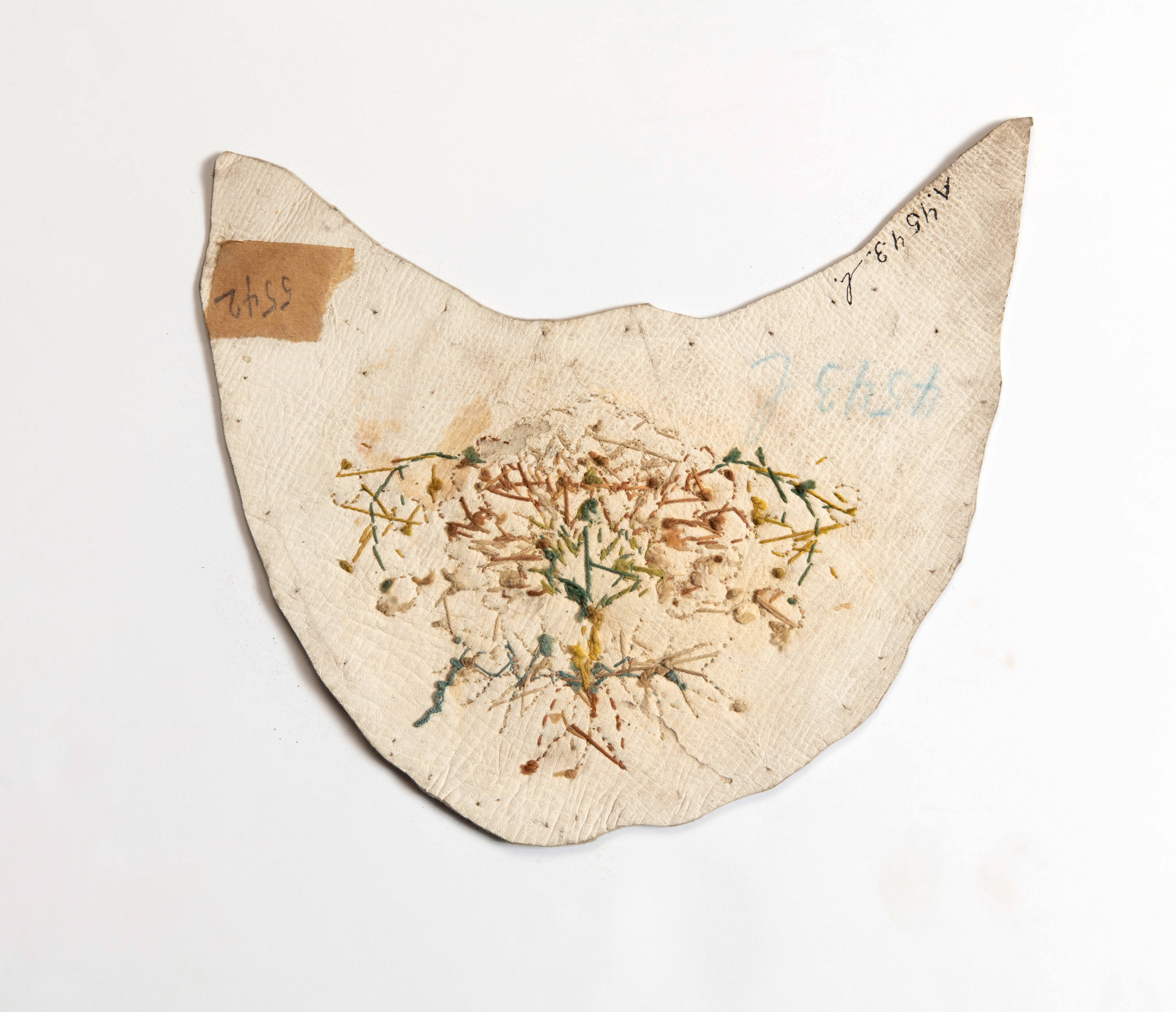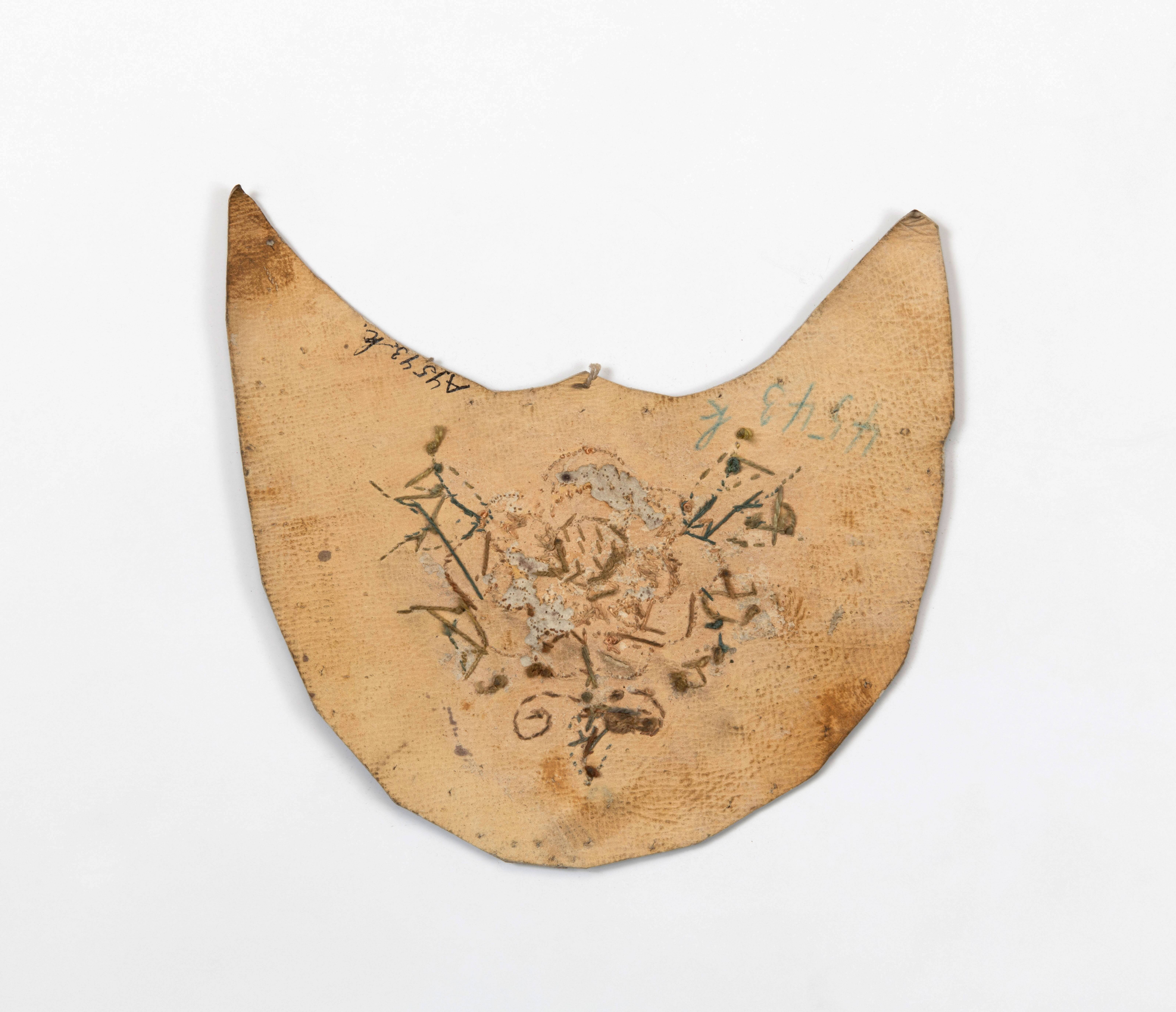 Geborduurd leren voorstuk van een muiltje