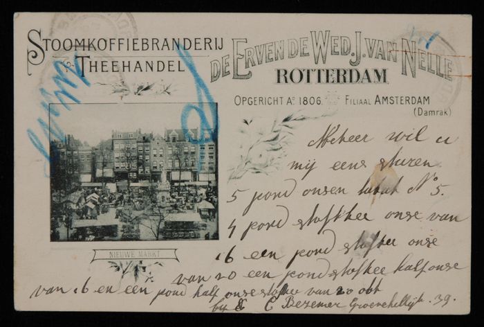 Ansichtkaart met advertentie Van Nelle en bestelling...