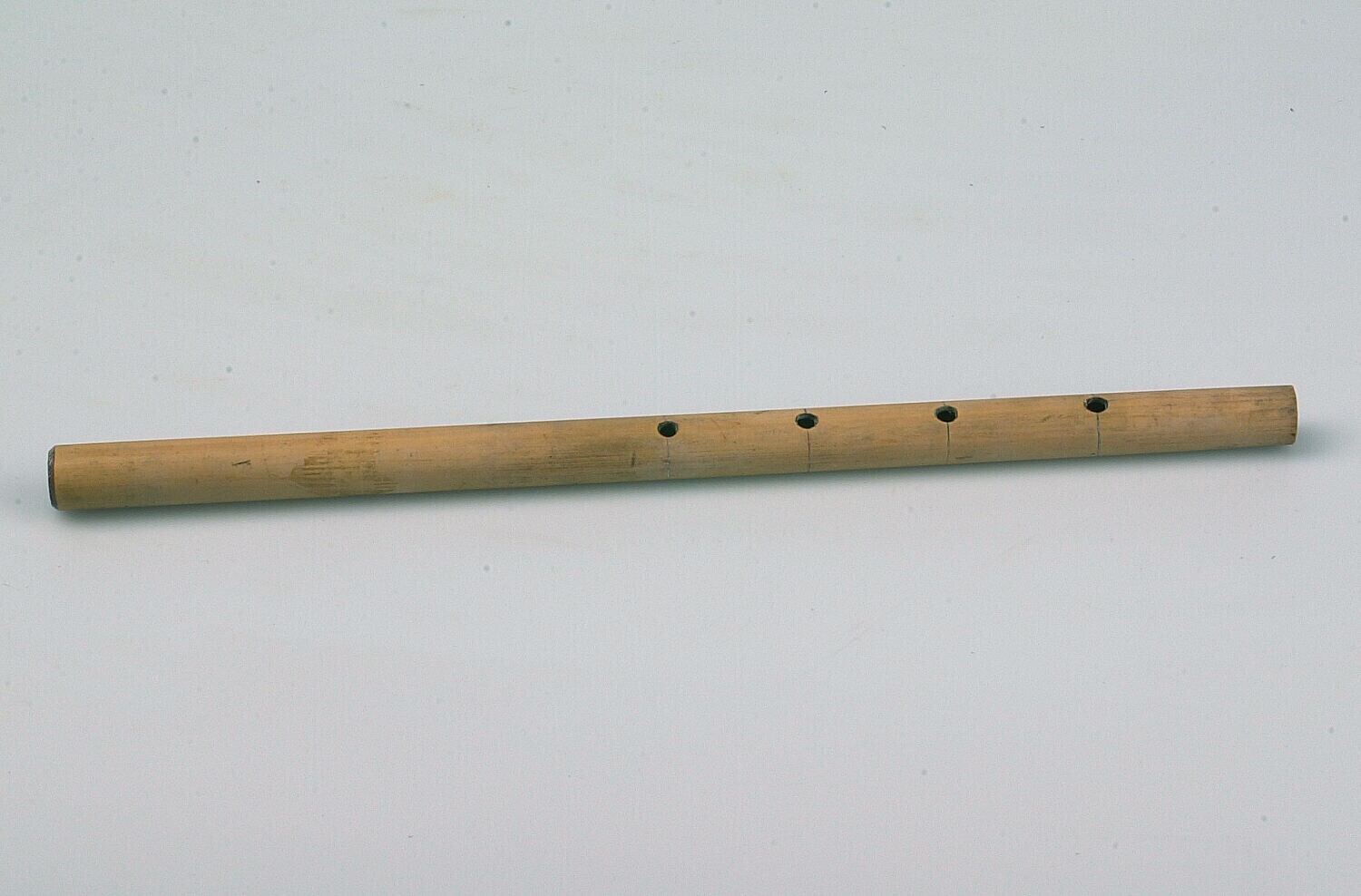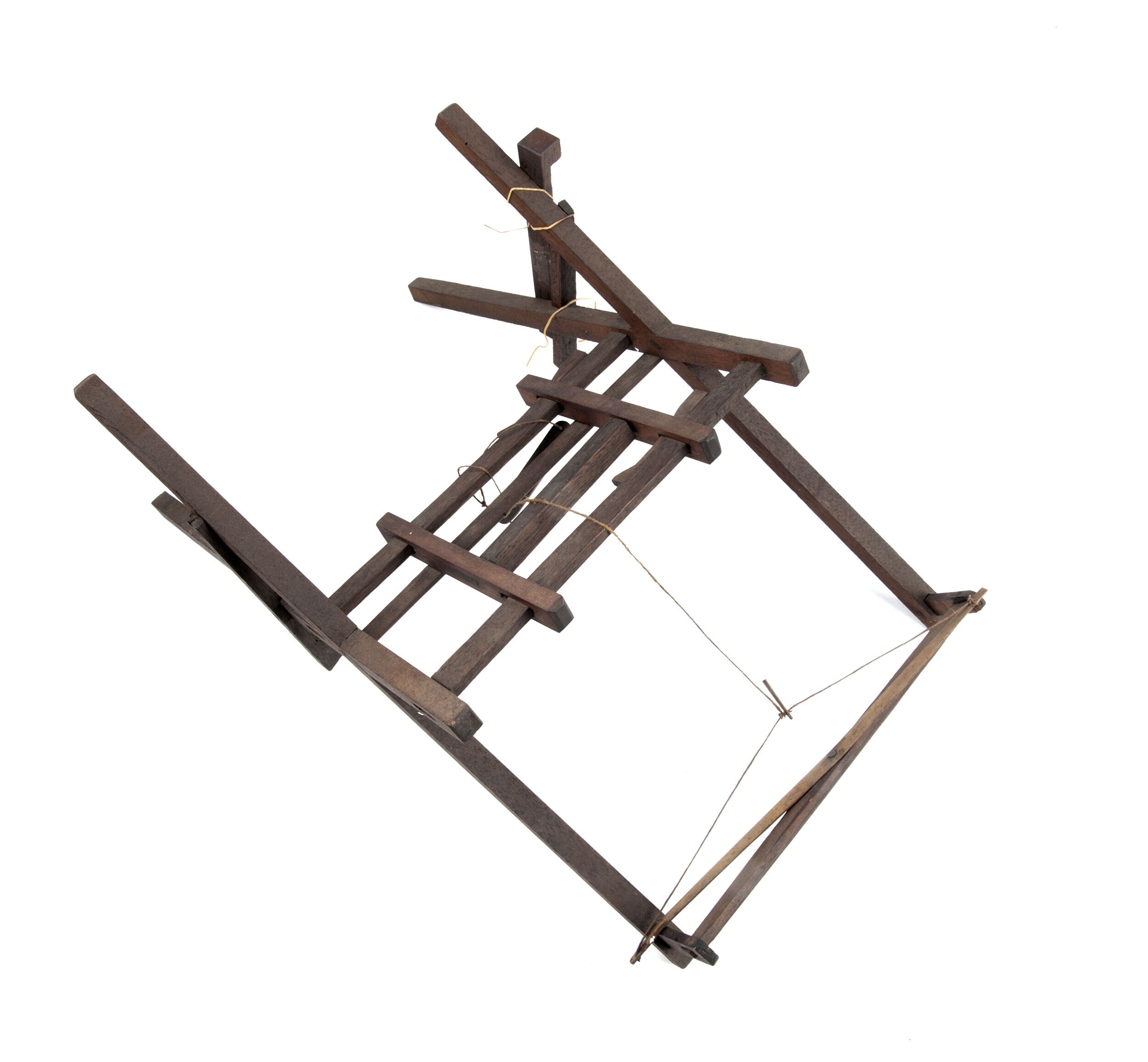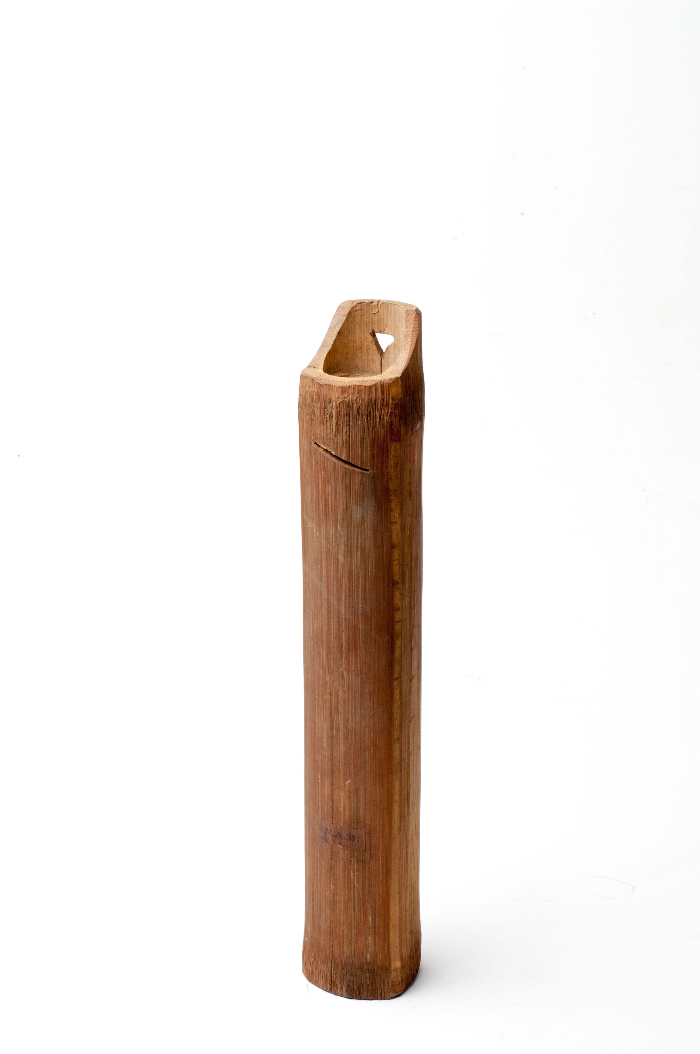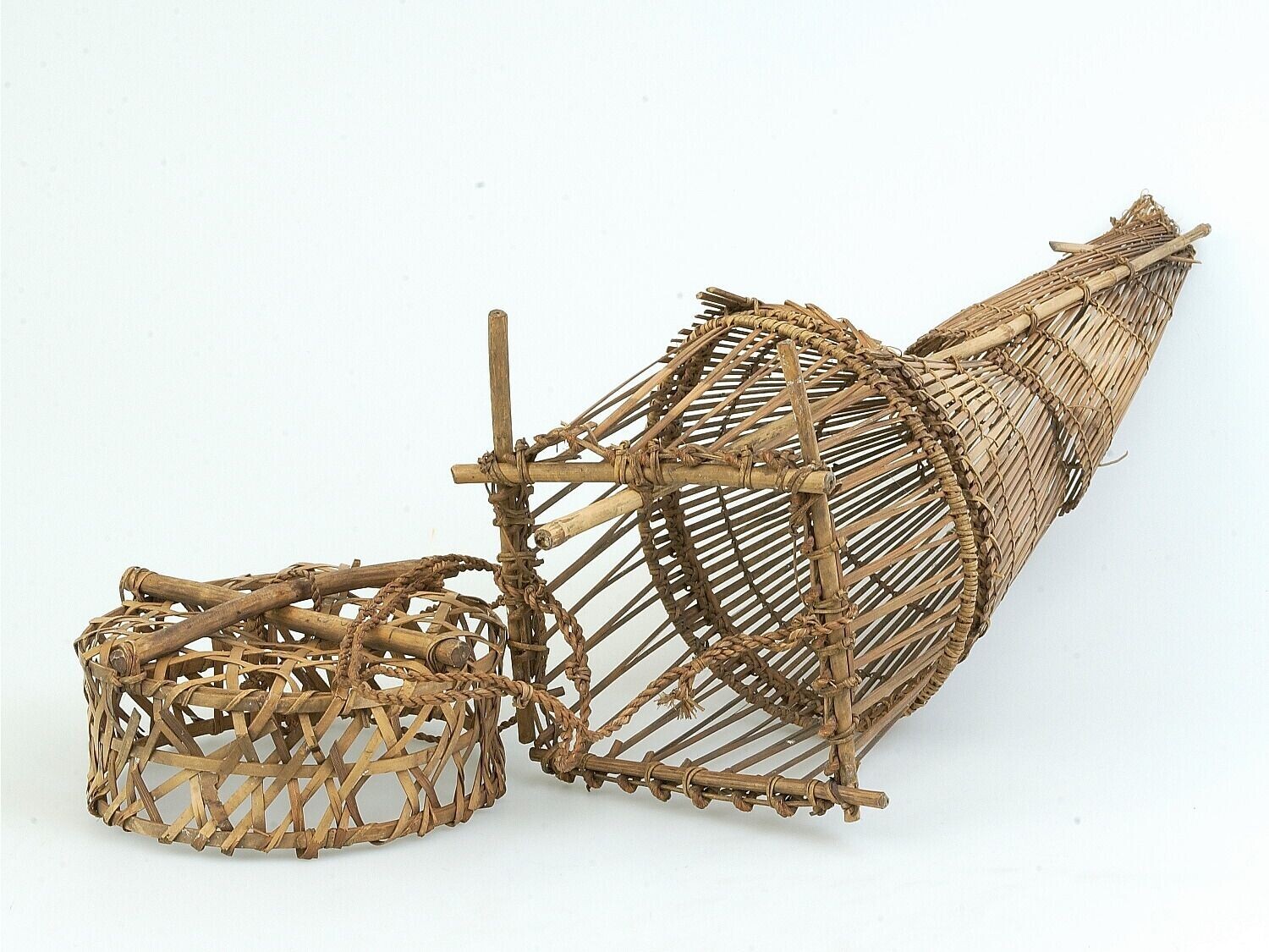 Schepmand van gevlochten bamboe, om vis mee te vangen