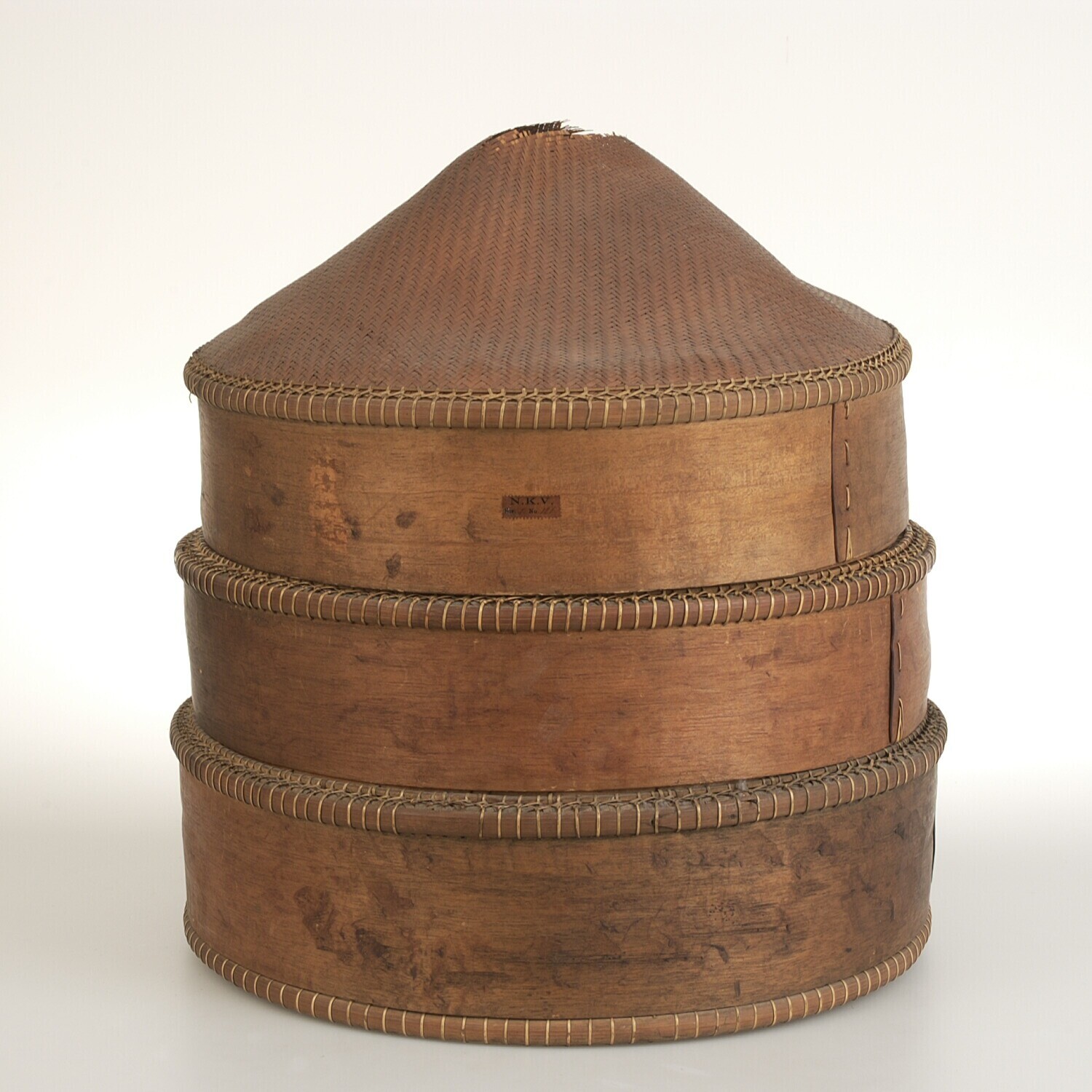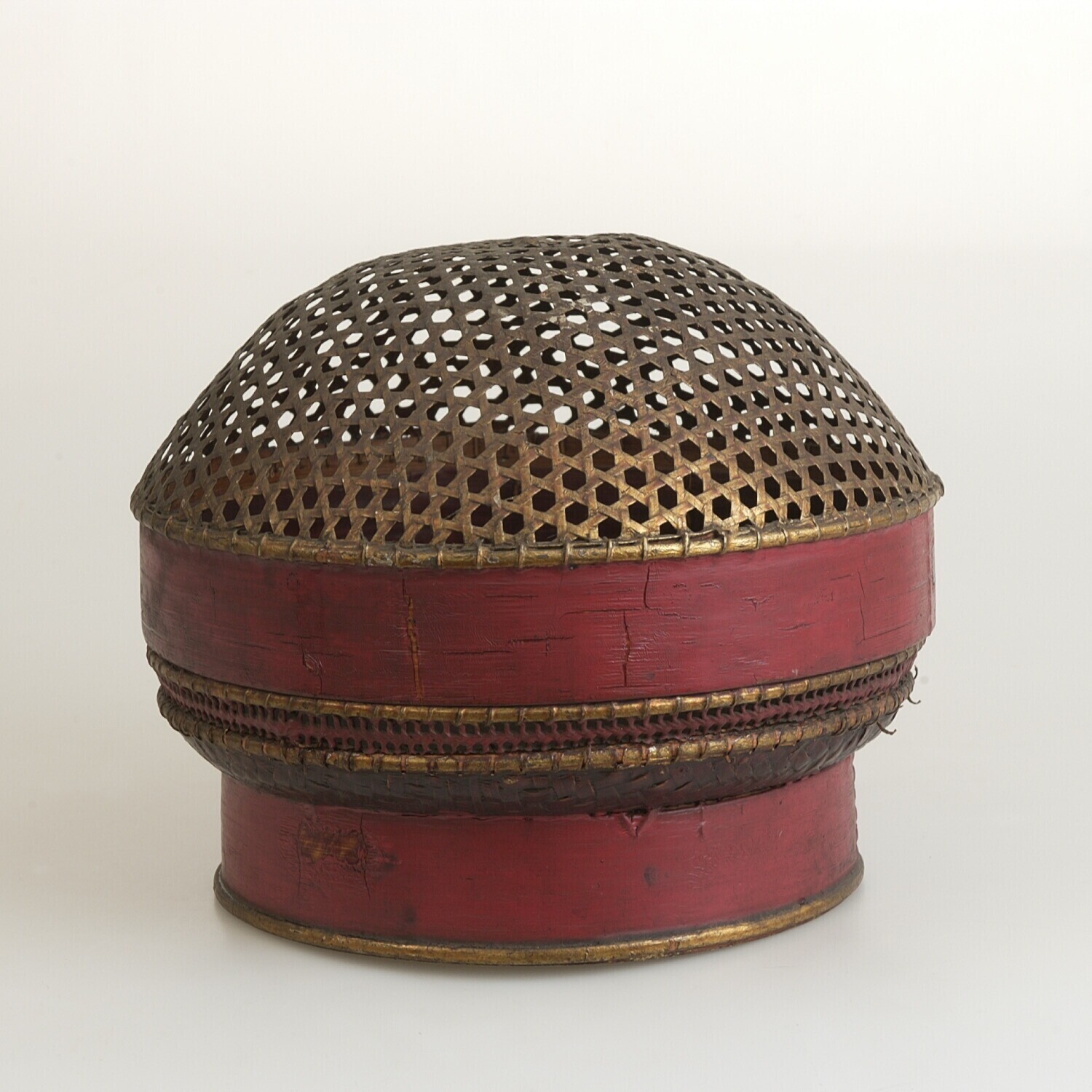 Gevlochten en beschilderde hoed van bamboe en rotan