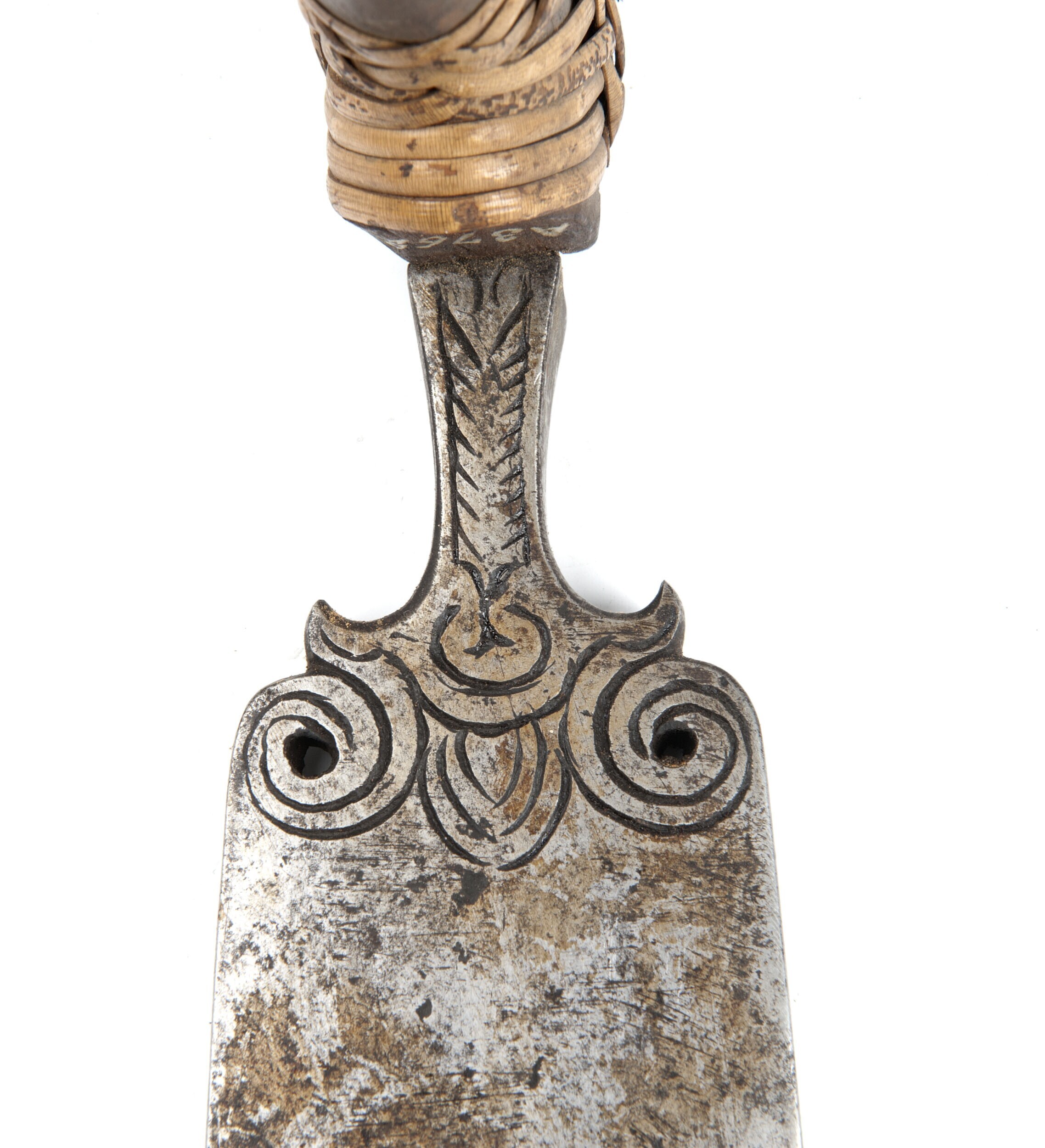 Dissel voorzien van ijzeren kling, versierd met smee...