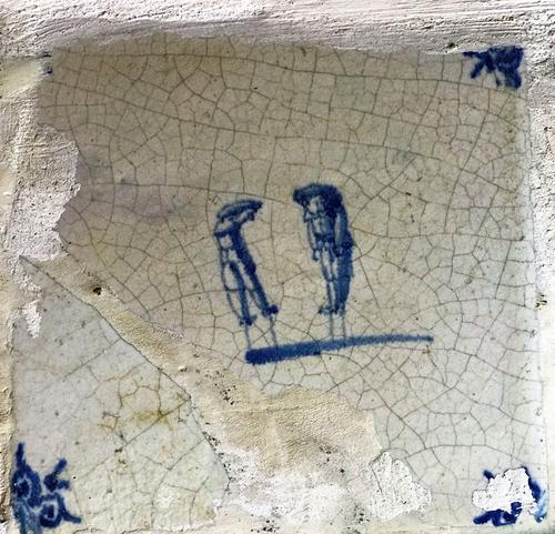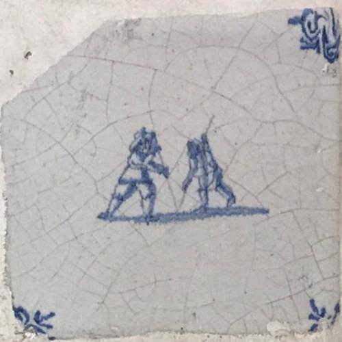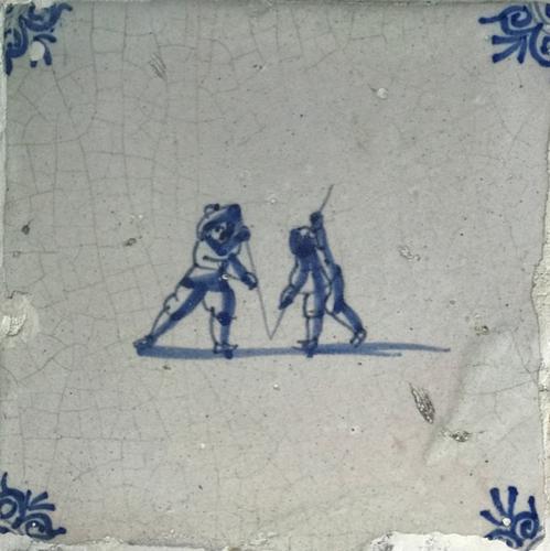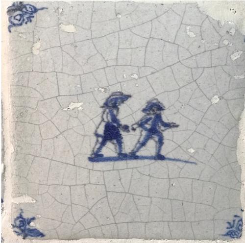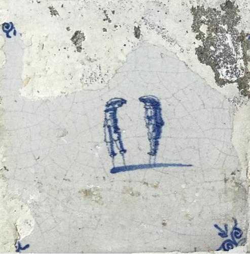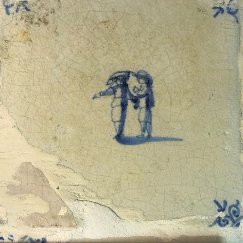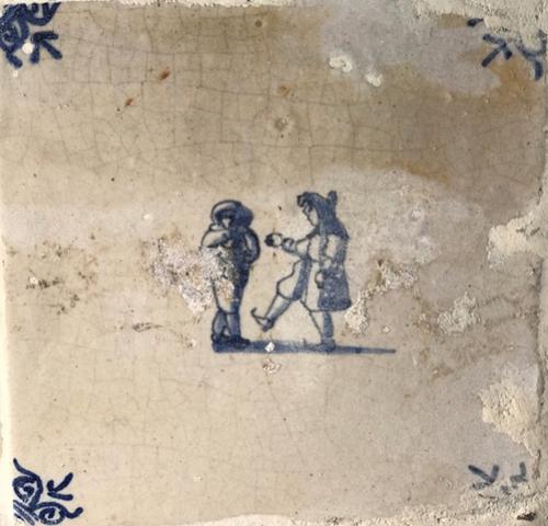 Tegel van aardewerk met tinglazuur voorstellende ste...