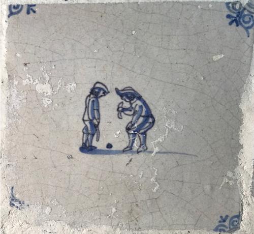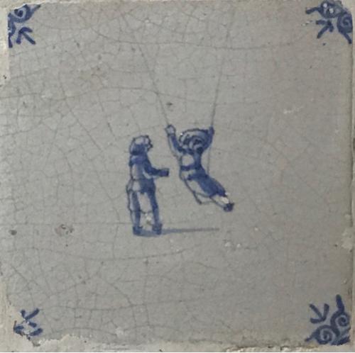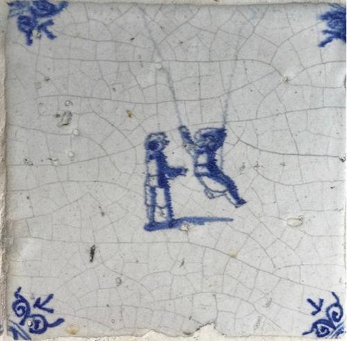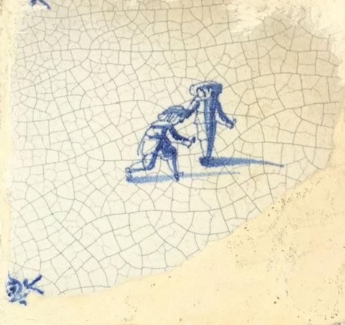 Tegel van aardewerk met tinglazuur voorstellende Klo...