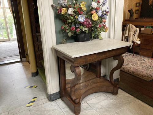 Biedermeier trumeau met marmeren blad, lade en spiegel