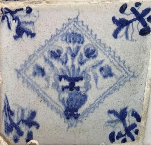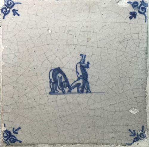 Tegel van aardewerk met tinglazuur voorstellende ? -...