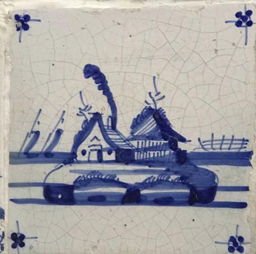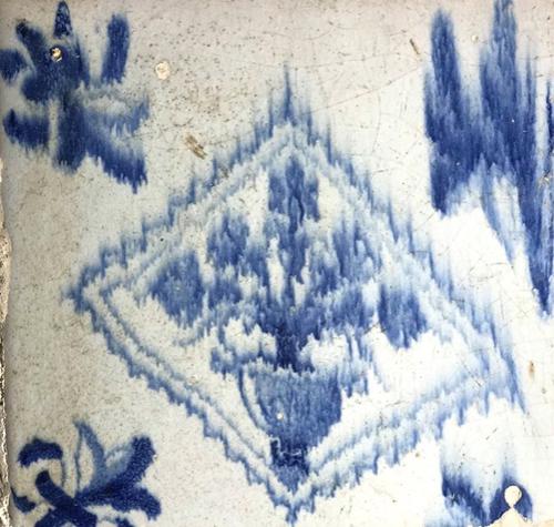 Tegel van aardewerk met tinglazuur voorstellende ? -...