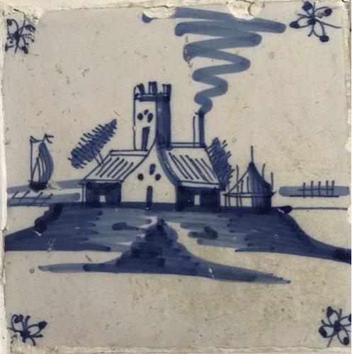 Tegel van aardewerk met tinglazuur voorstellende Lan...
