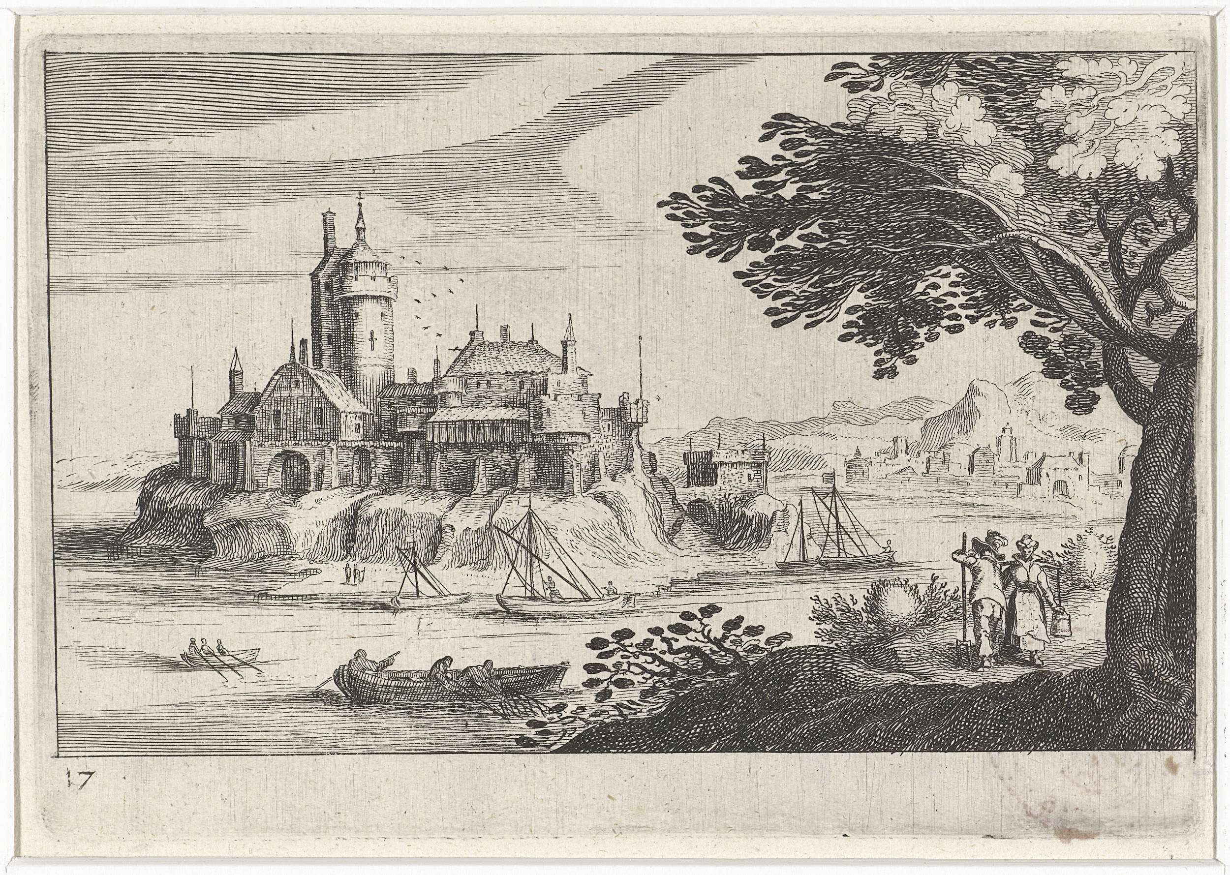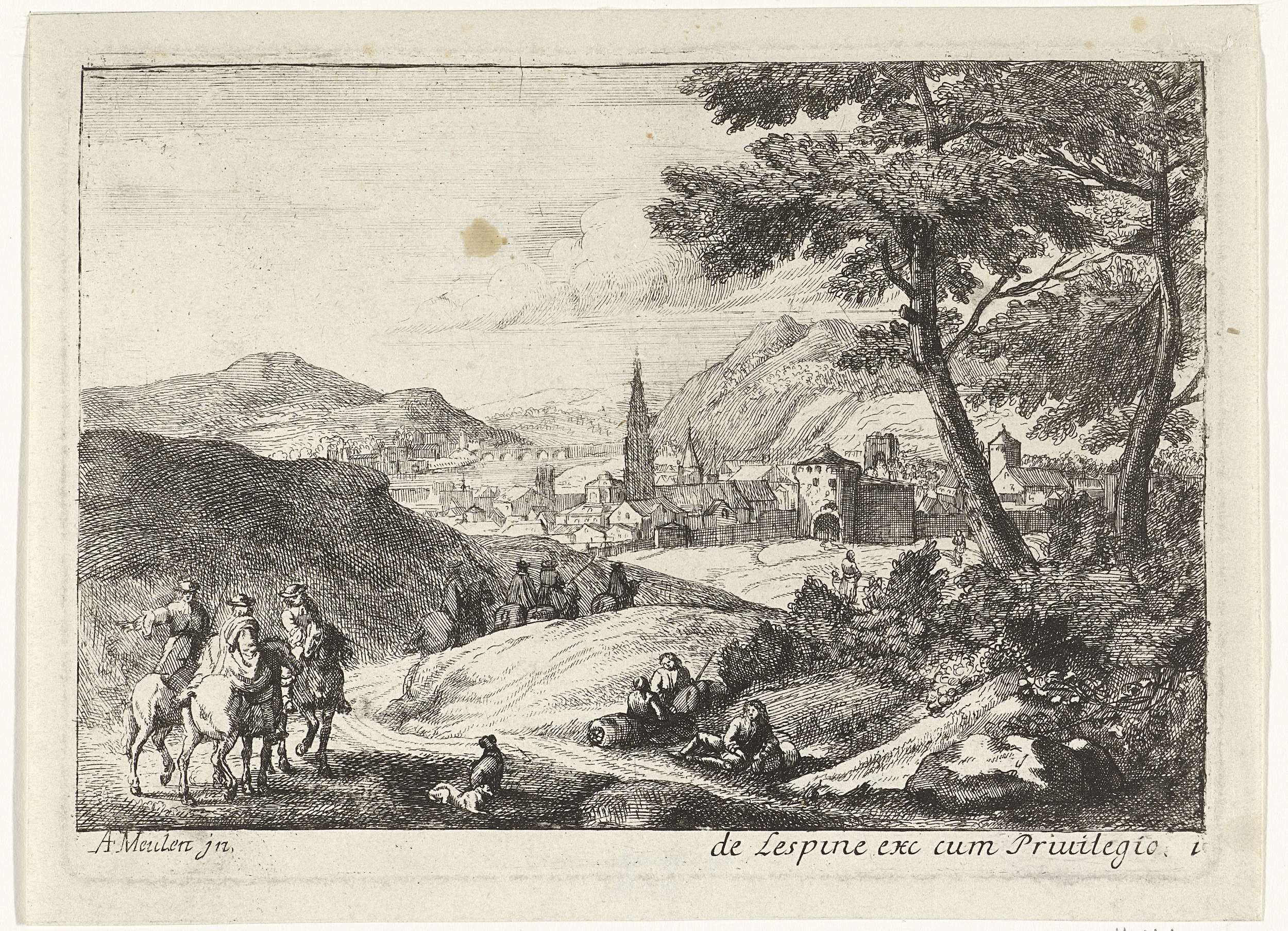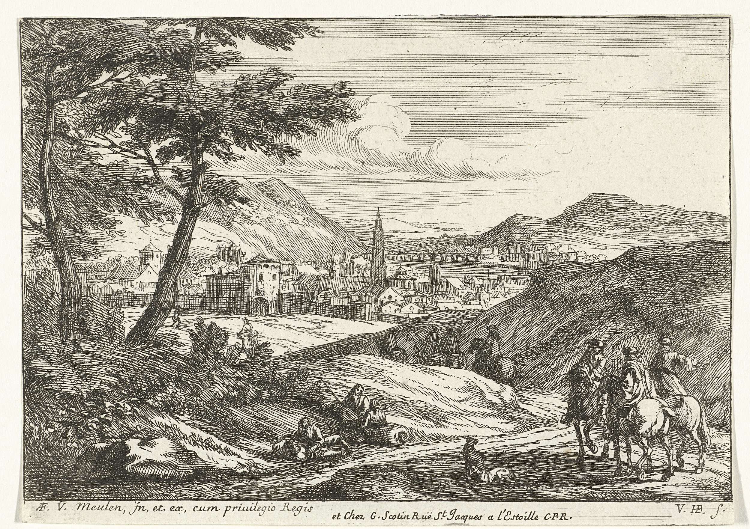Landschap met figuren en stad