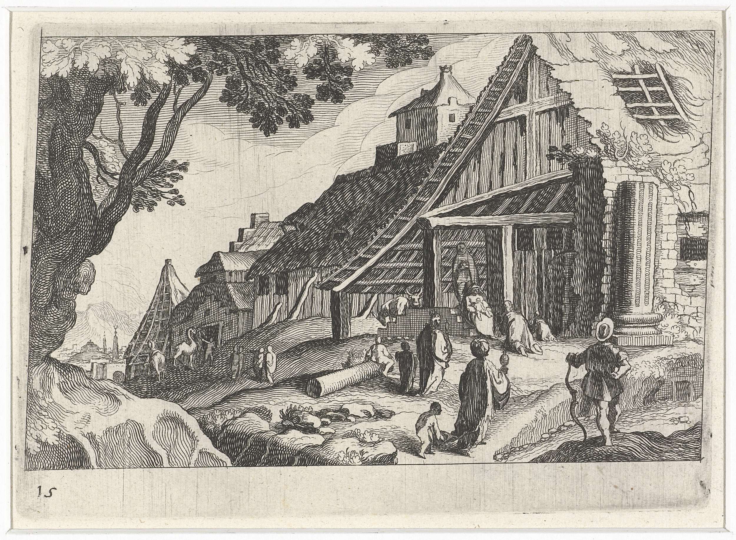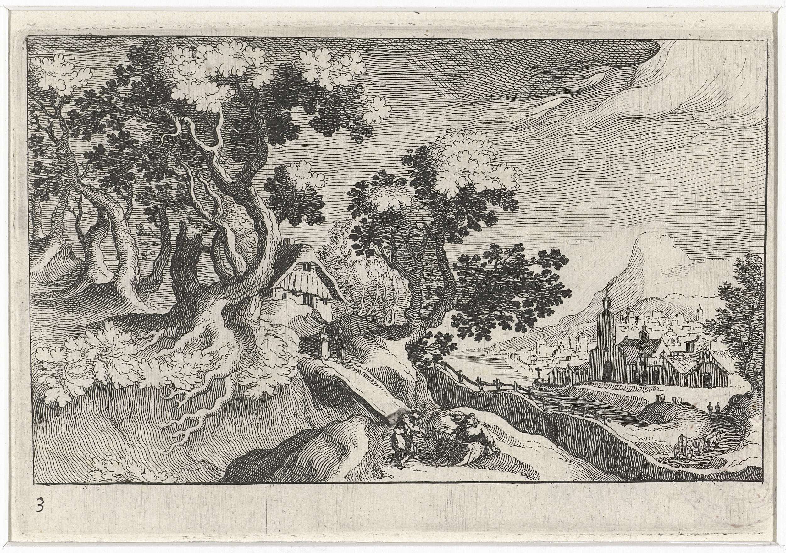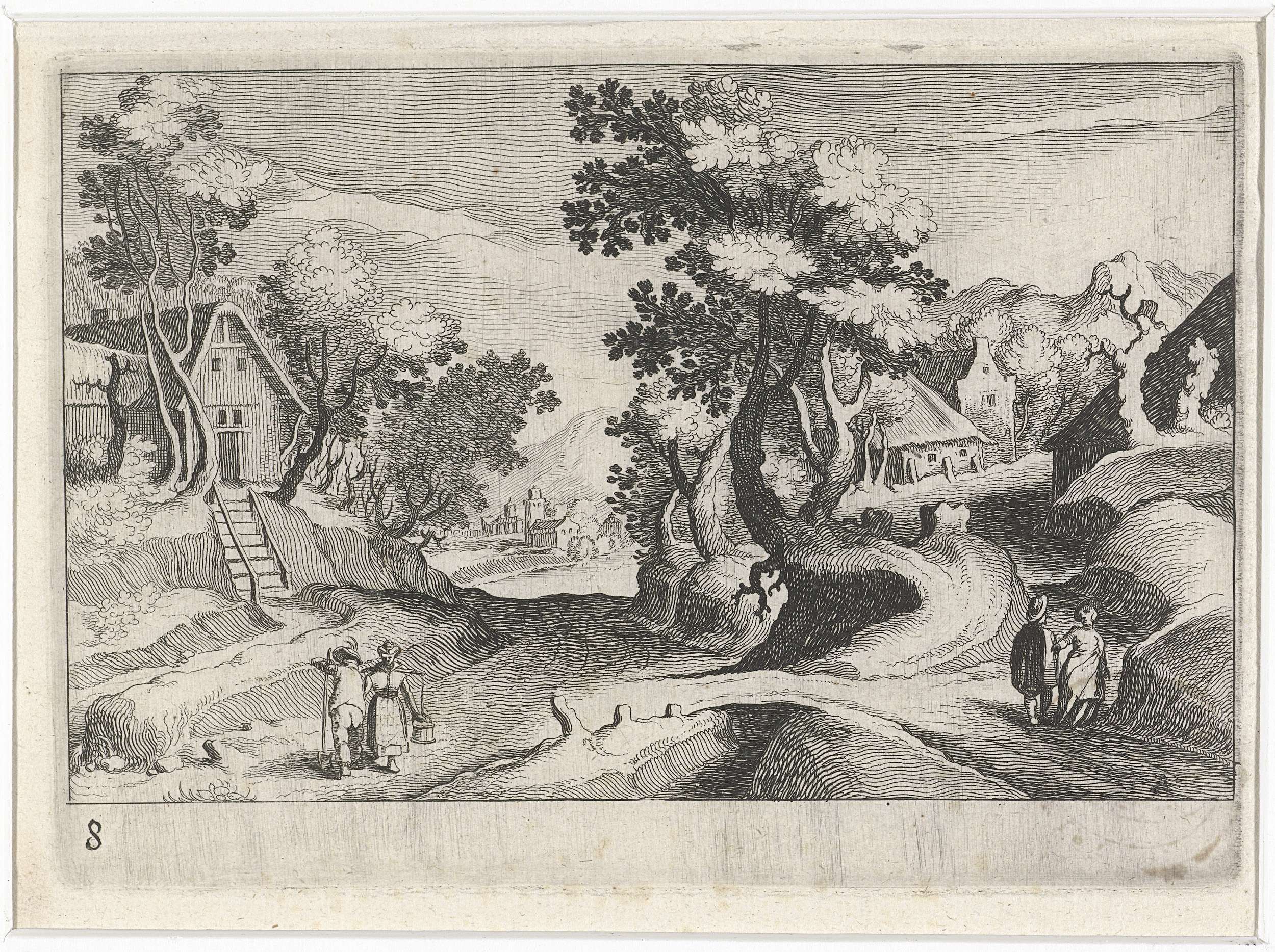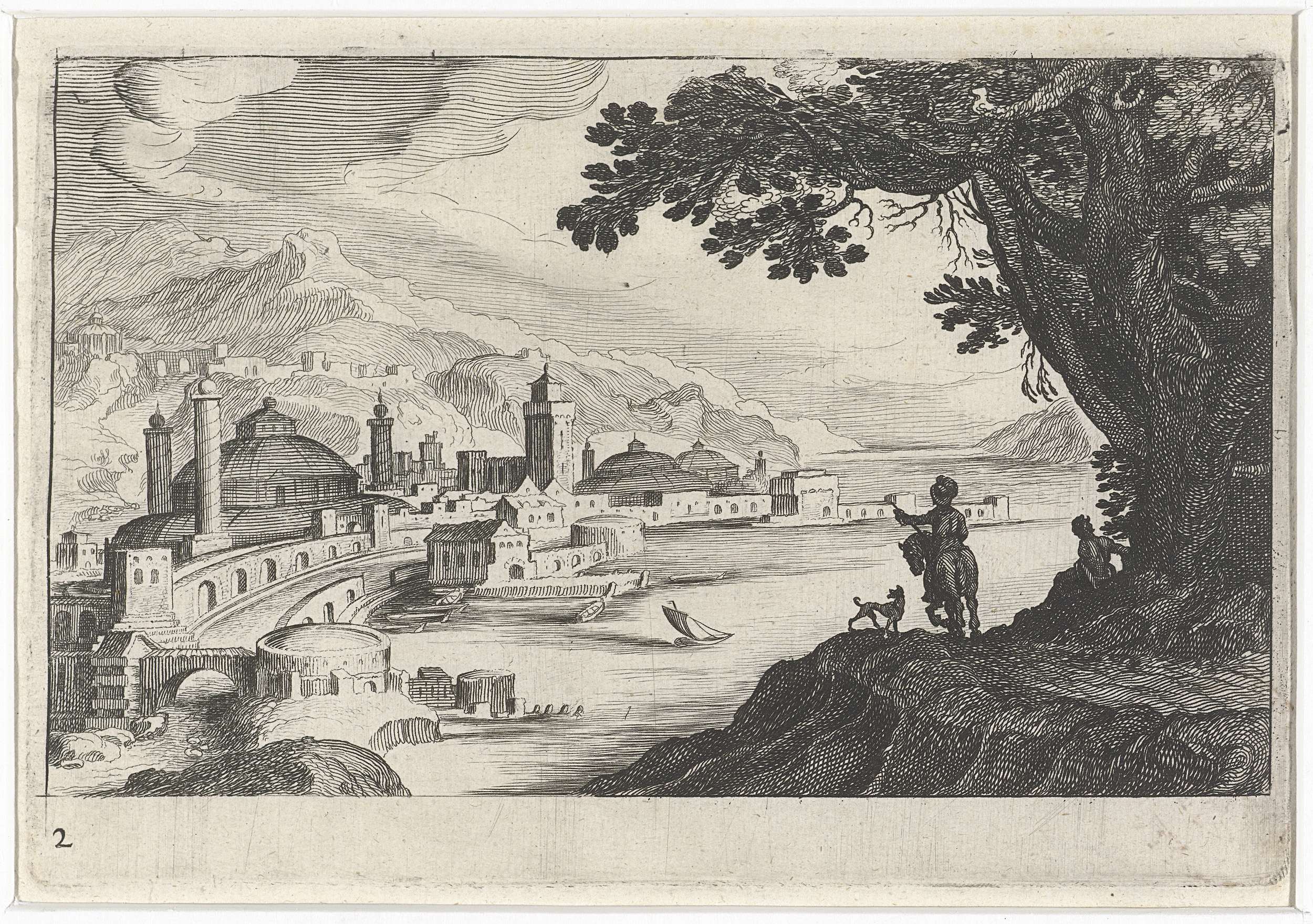 Landschap met figuren en stad