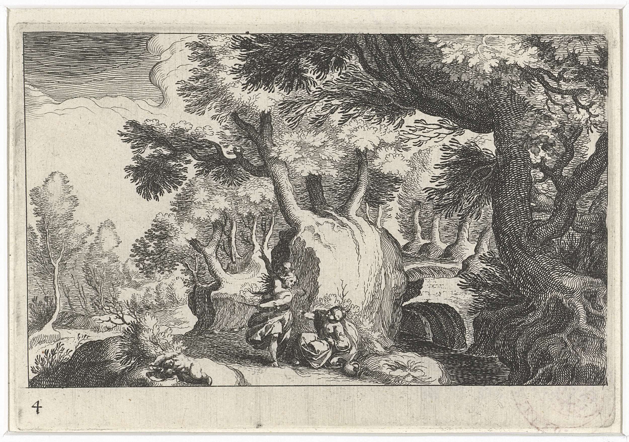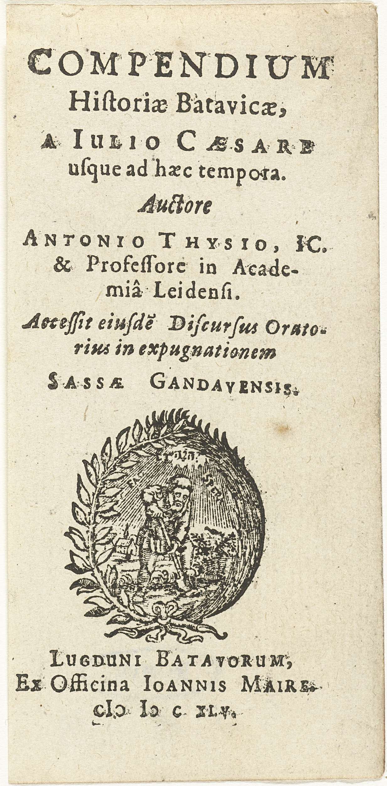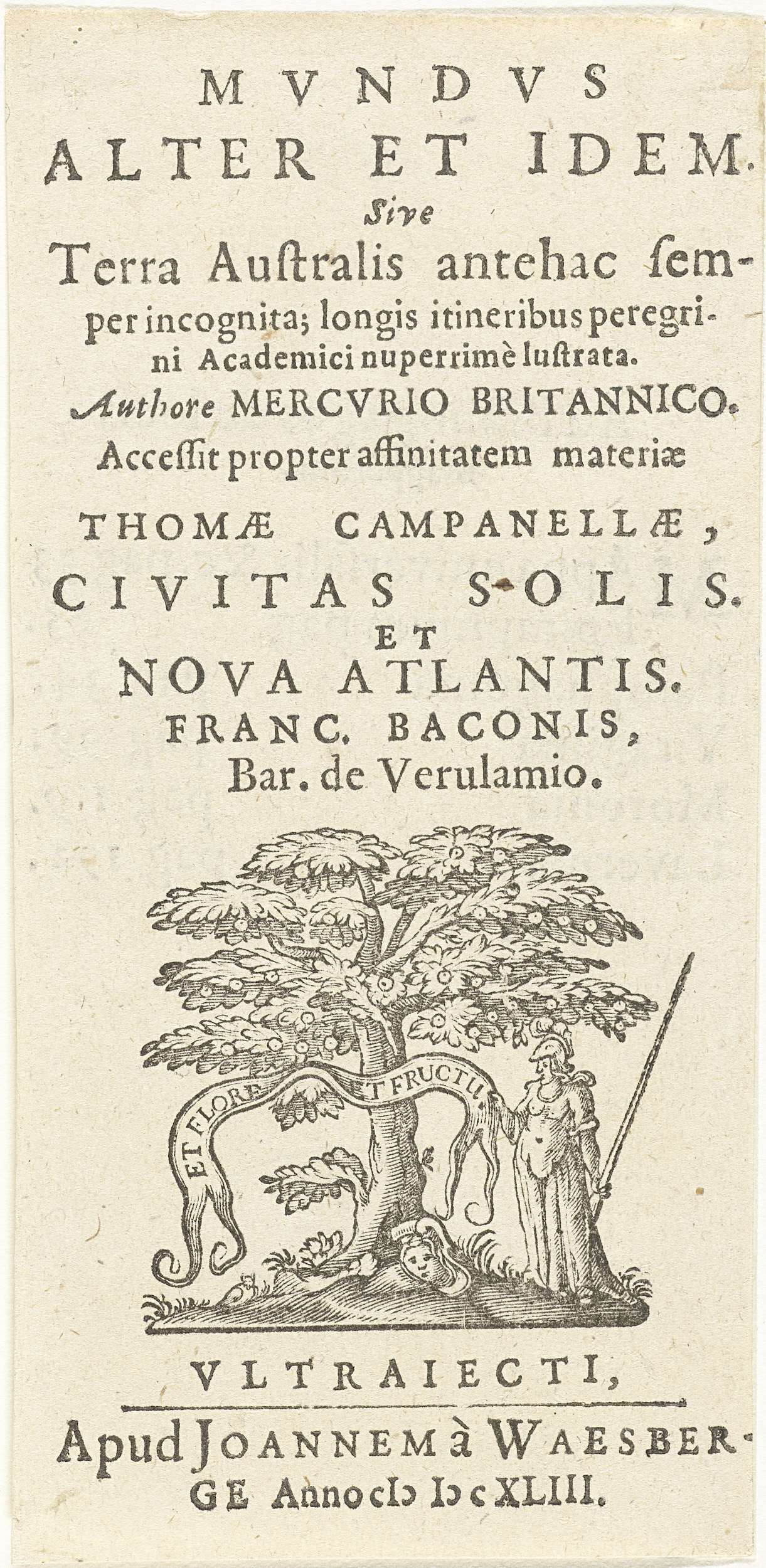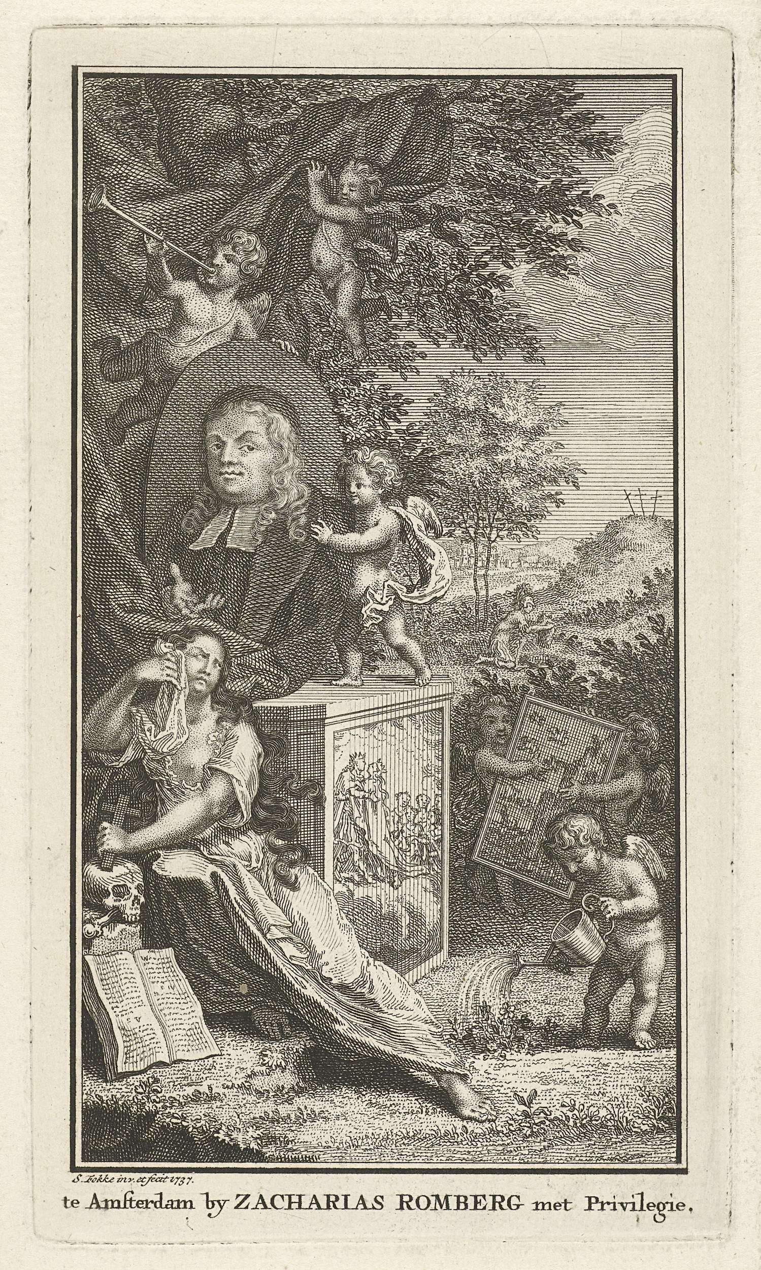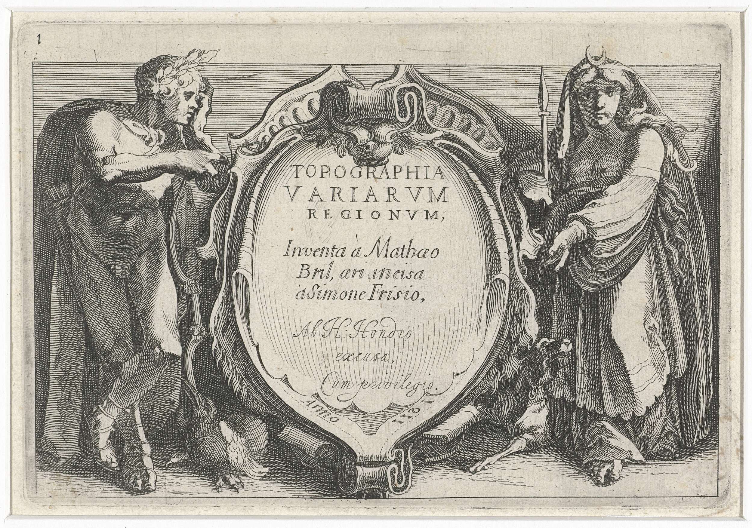 Titel en titelvignet met Minerva staand bij boom met...