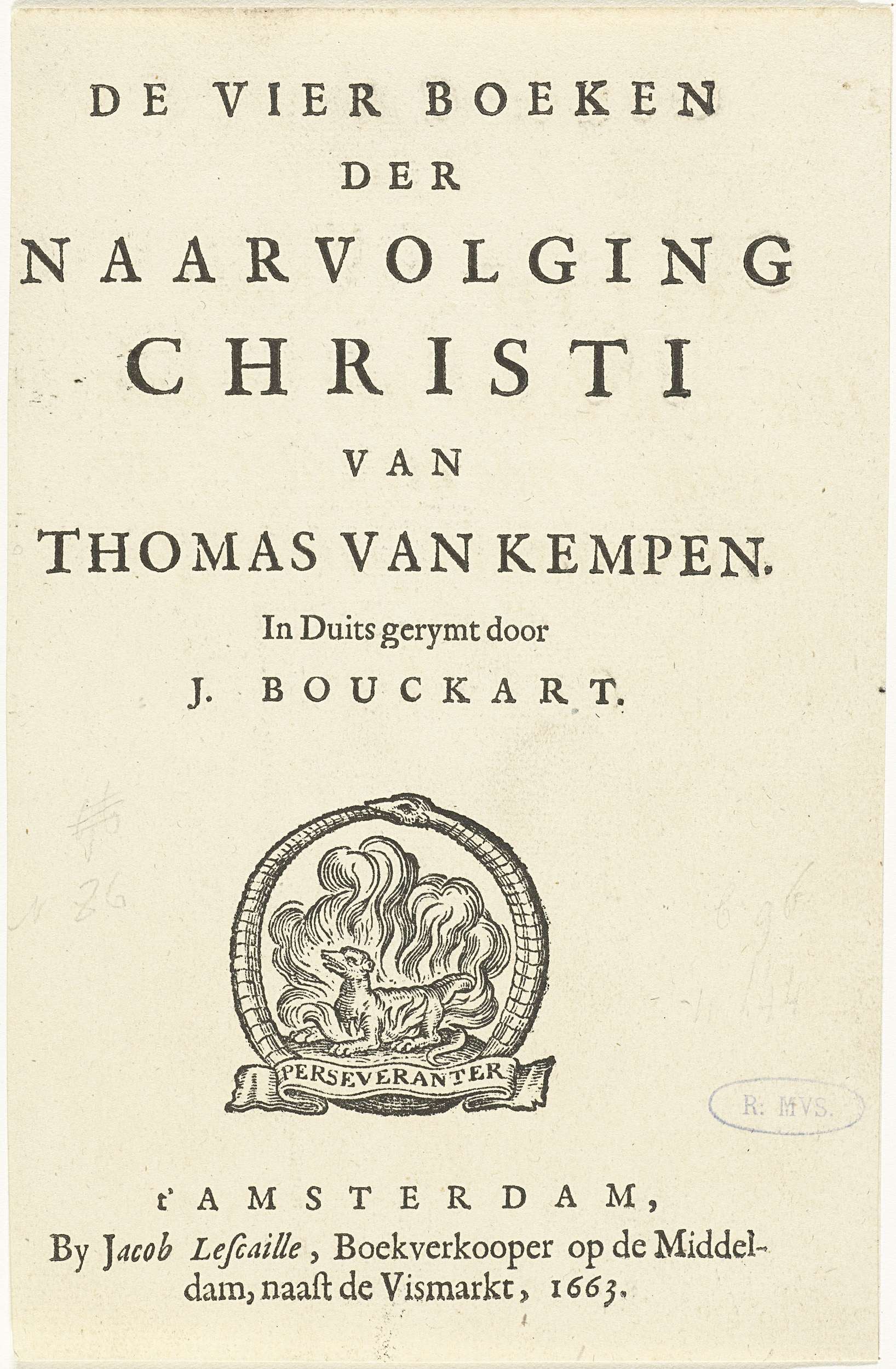 Titel en titelvignet met hond in vlammen en slang di...
