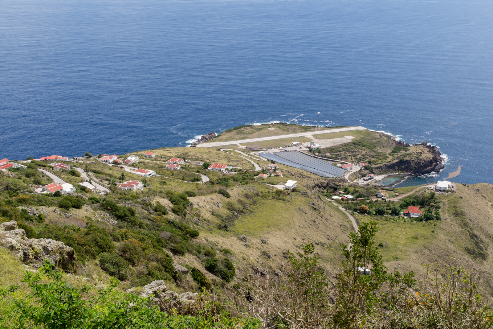 Juancho E. Yrausquin Airport gezien vanuit Zion's Hill.