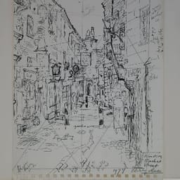 Schets zonder titel (Stadsgezicht met markt en passa...