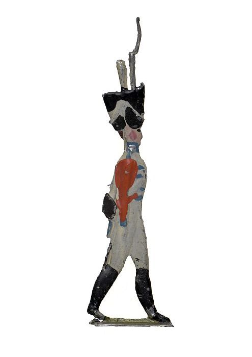 Tinnen figuur in de vorm van een Franse trommelslage...
