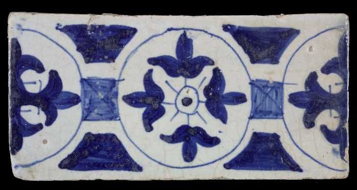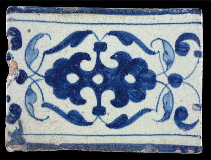 Randtegel, arabesken of palmetten in blauw