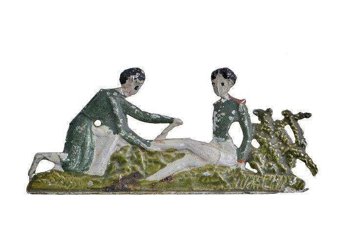 Tinnen figuur in de vorm van een Pruisische vaandeld...