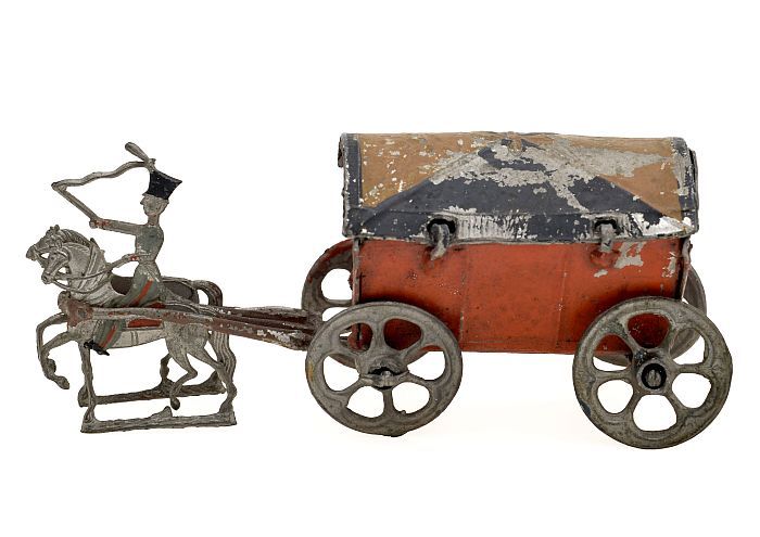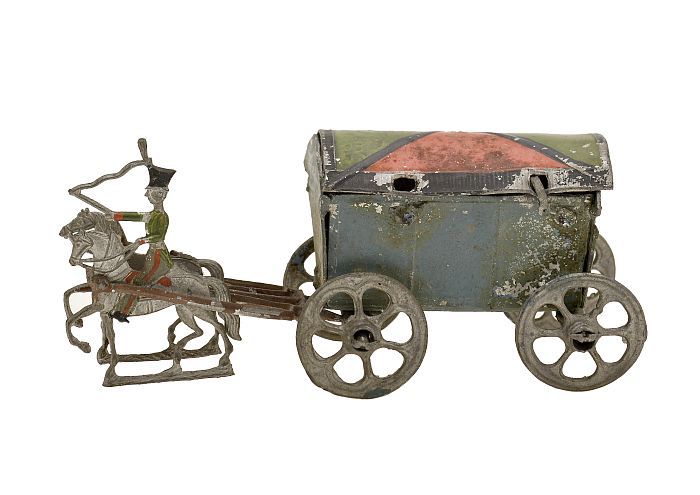 Tinnen figuur van munitiewagen Franse jagers, getrok...