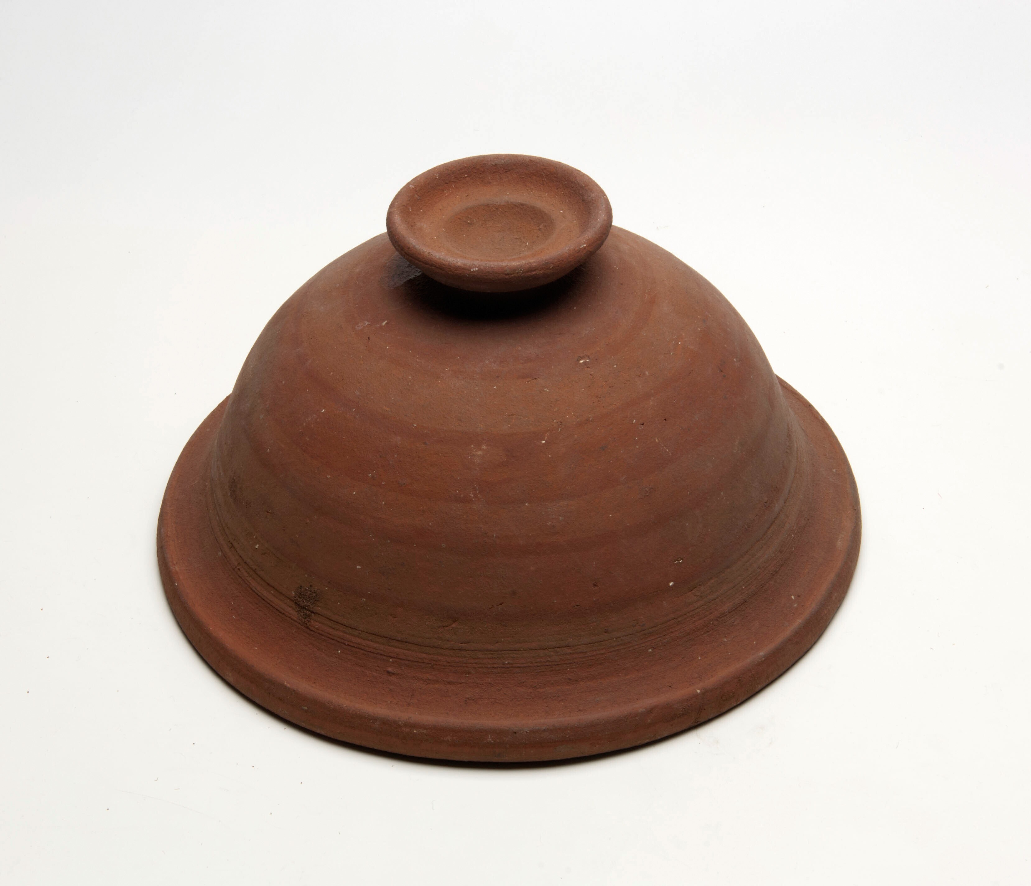 Aardewerken deksel van rijstketel, onderdeel van een...