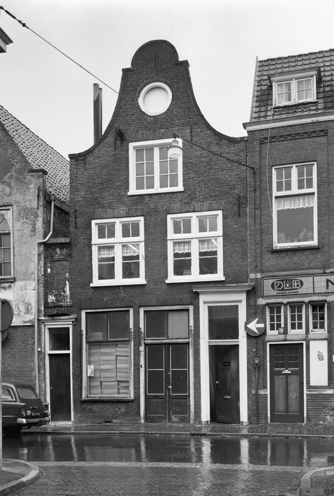 voorgevel pand met klokgevel.