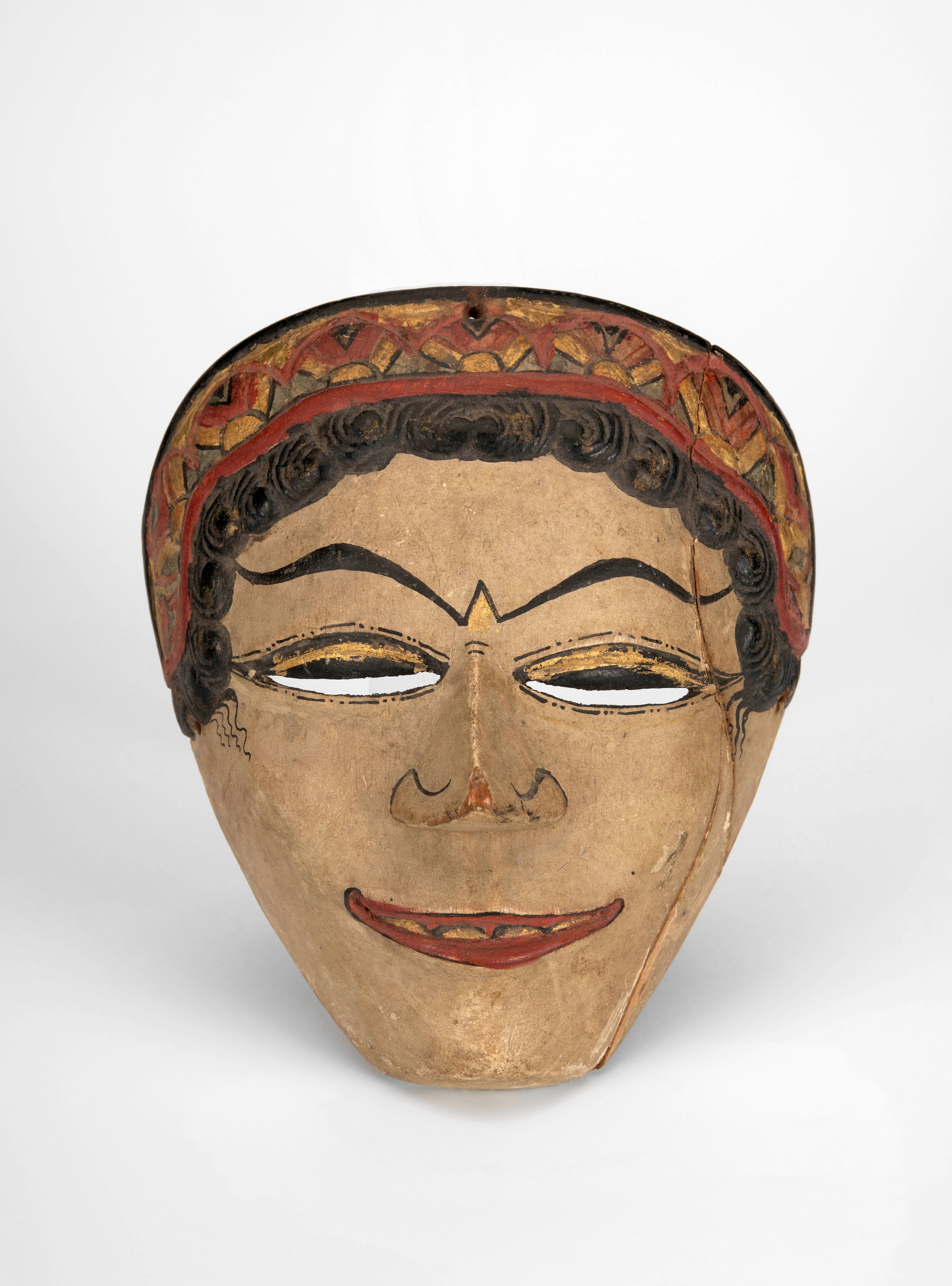 Gesnlen en beschilderd beeld van een wajangfiguur