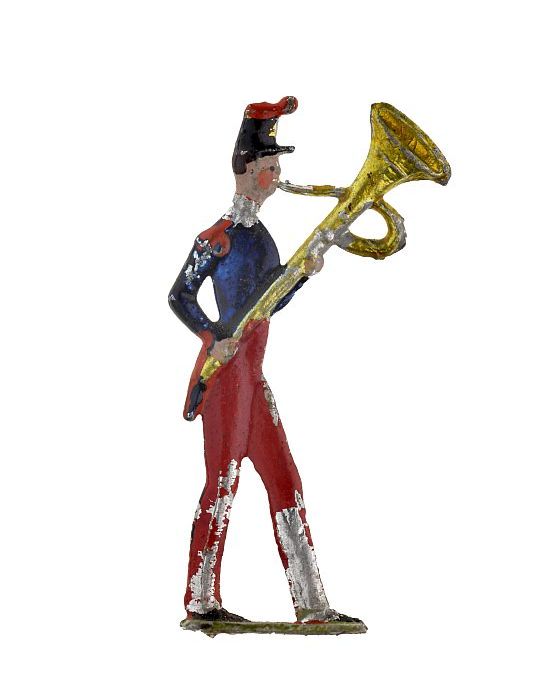 Tinnen figuur in de vorm van een Franse tubaïst (inf...