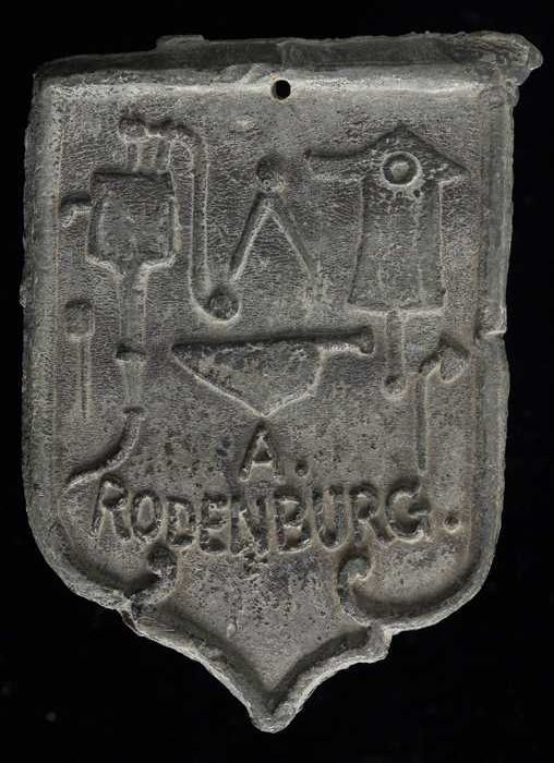 Dakloodje, schildvormig afdekplaatje met "A. Rodenbu...