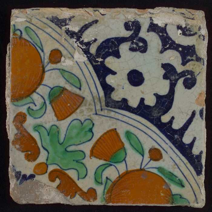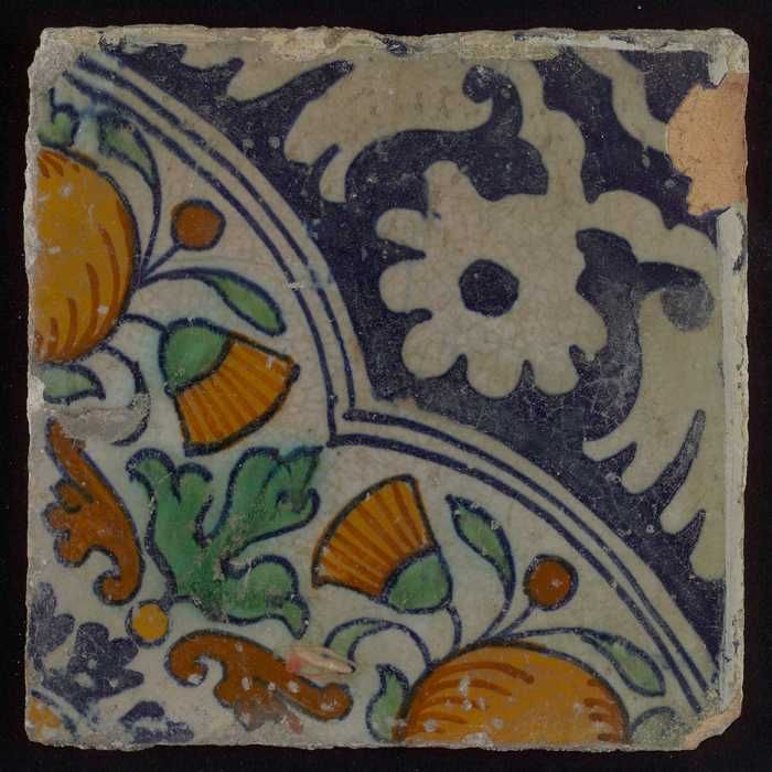 Ornamenttegel, diagonaal ornament in vierpas met ora...