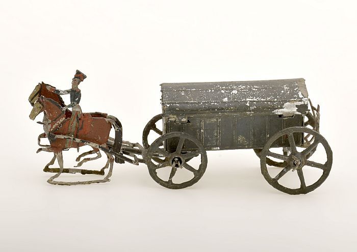 Tinnen figuur van munitiewagen Franse jagers, getrok...