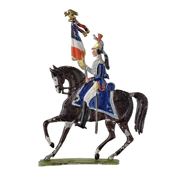 Tinnen figuur in de vorm van een Franse kurassier te...