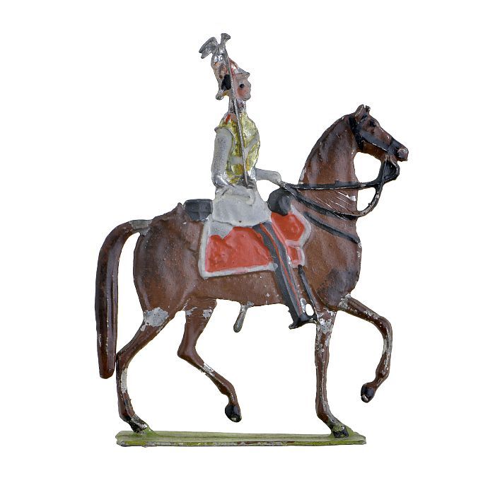 Tinnen figuur in de vorm van een officier te paard