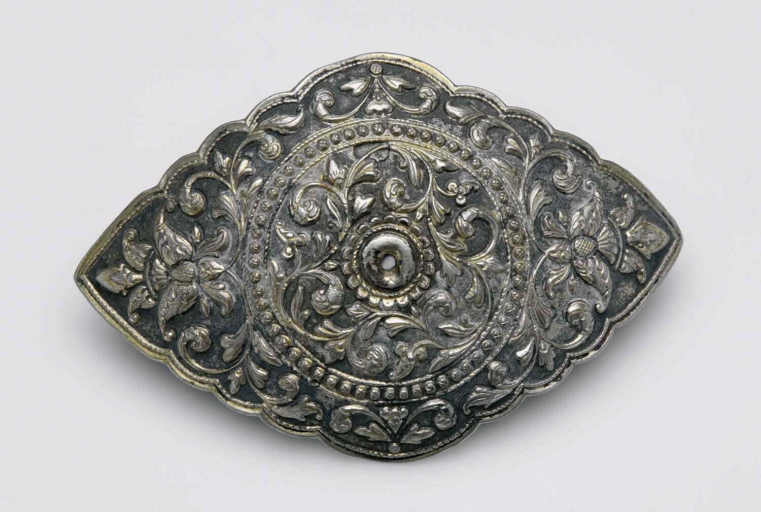 Messingen gordelplaat, versierd met bloem- en bladmo...
