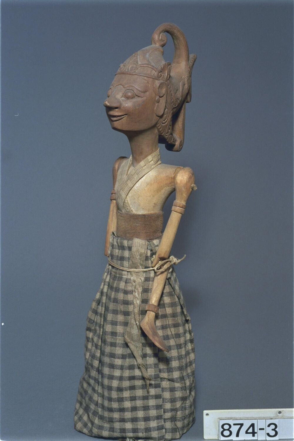Houten wajangfiguur, een demon voorstellende