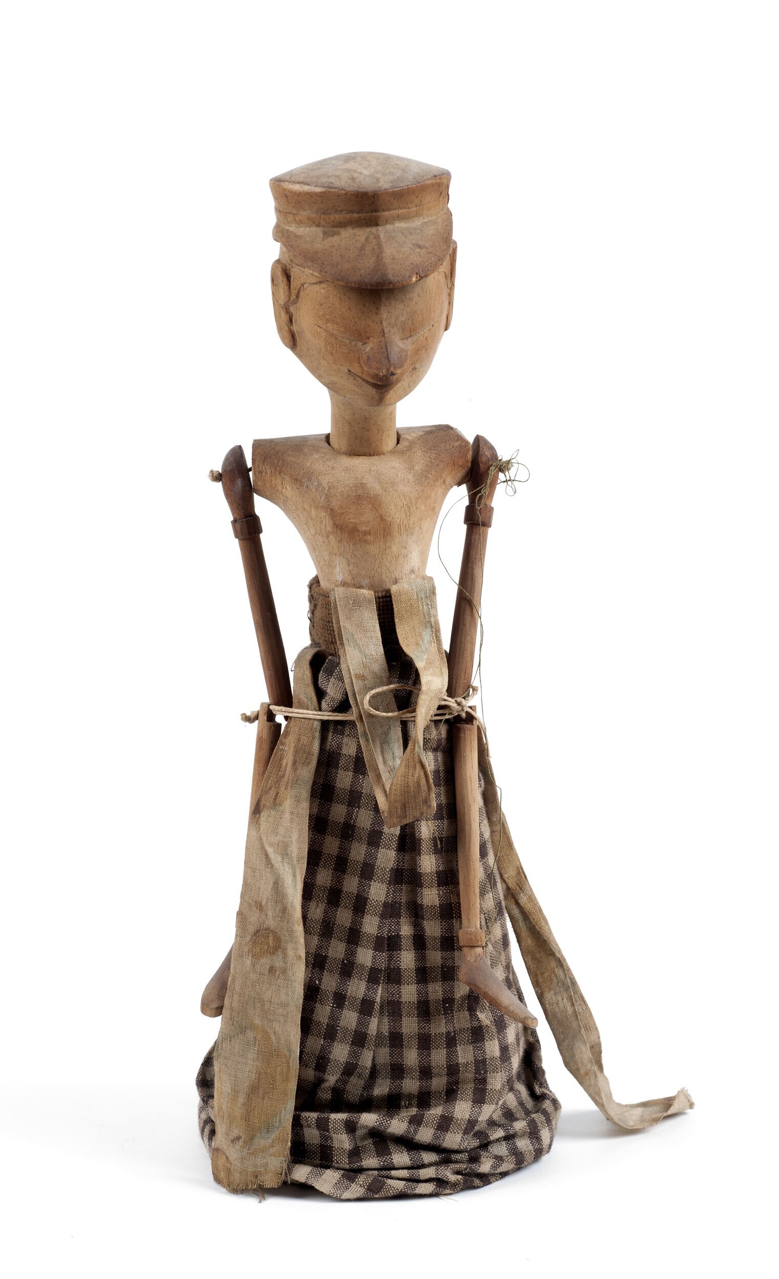 Gesnlen houten stokpop met rok van katoen
