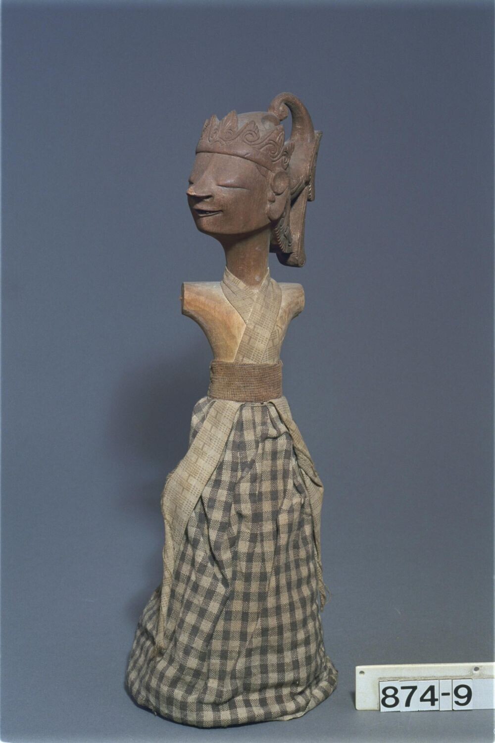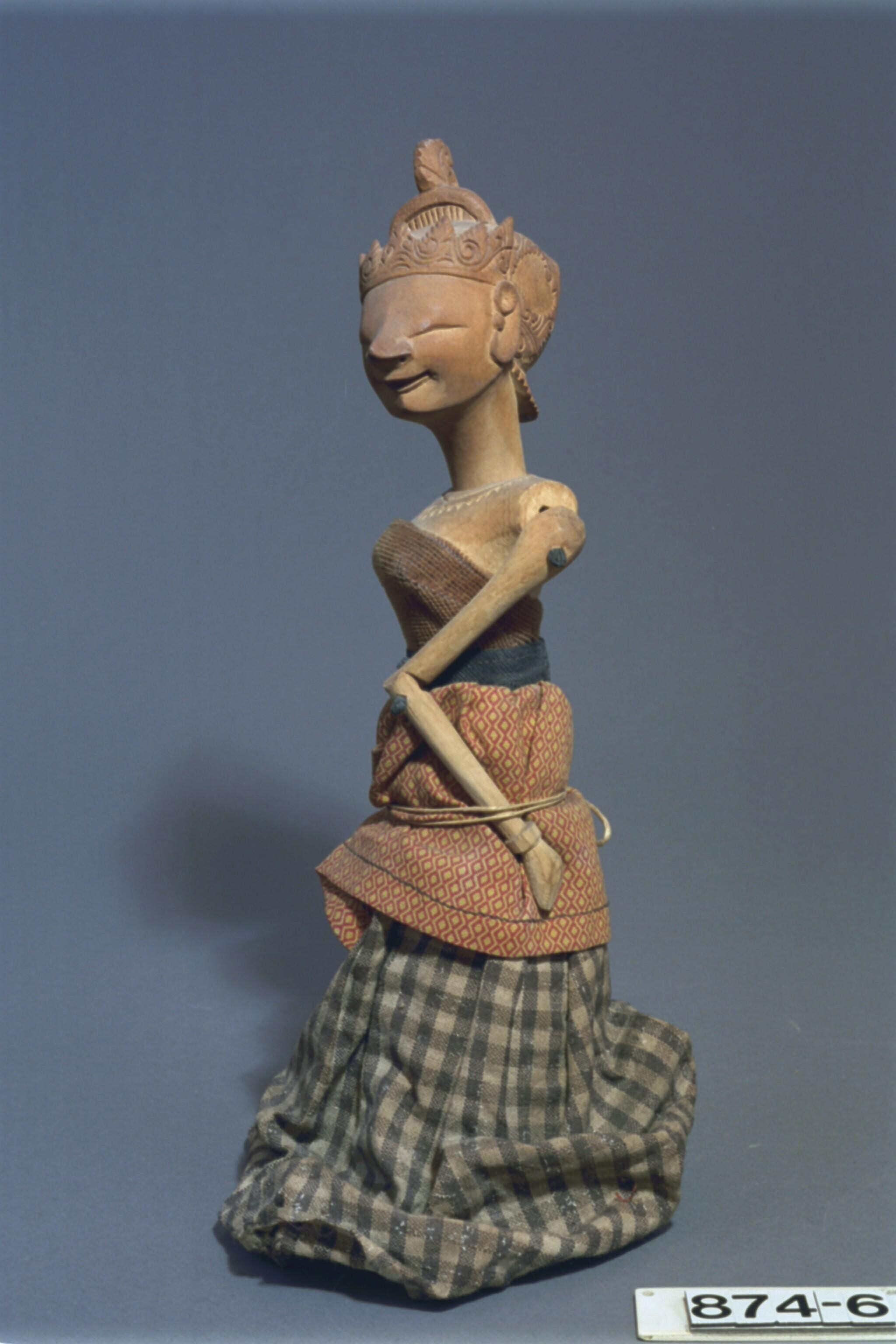 Wajangfiguur, voorstellende de hemelnymf Dewi Tari