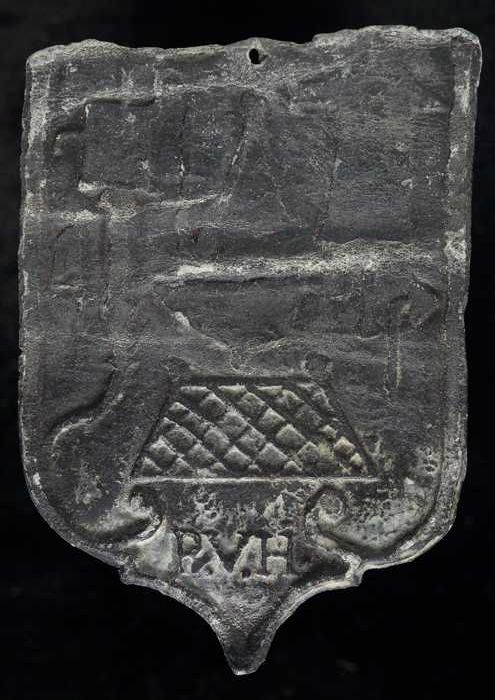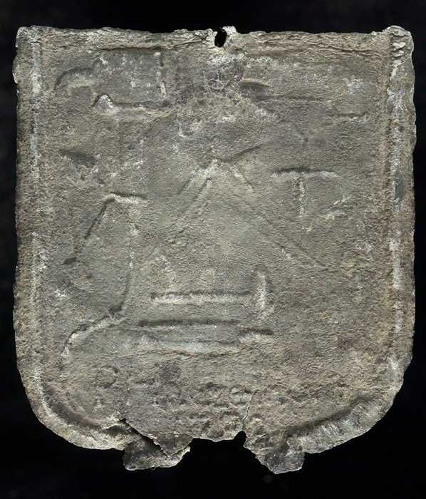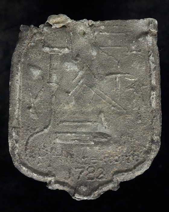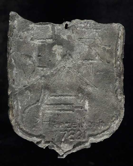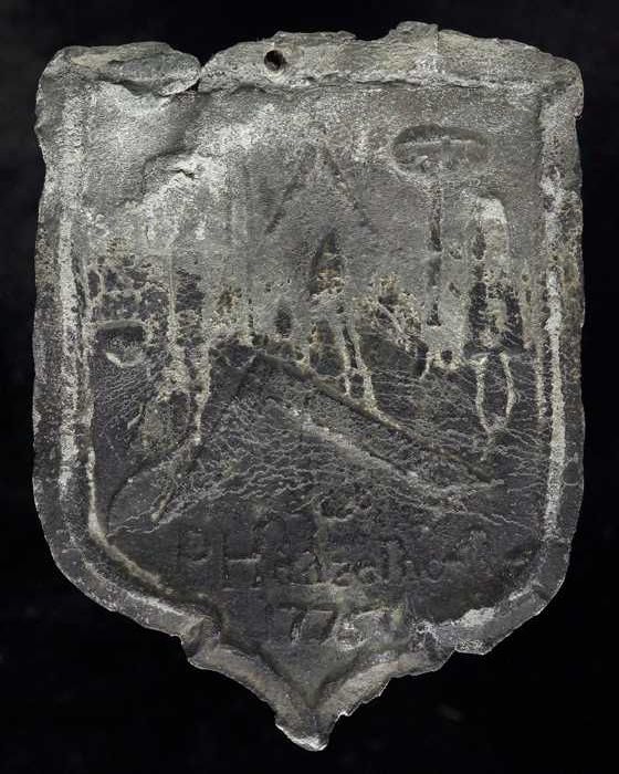 Dakloodje, schildvormig afdekplaatje met "1783", "P....