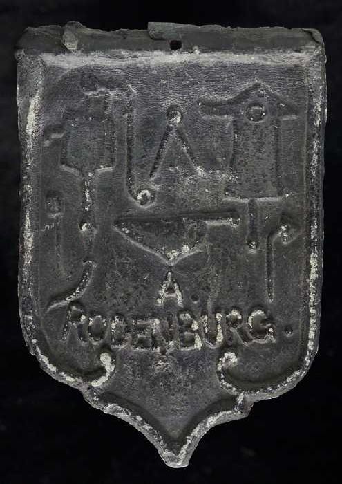 Dakloodje, schildvormig afdekplaatje met "RODENBURG"...